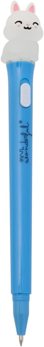 Penna con una piccola luce, incorpora un coniglio Mr. Wonderful all'estremità. Colore dell'inchiostro: blu