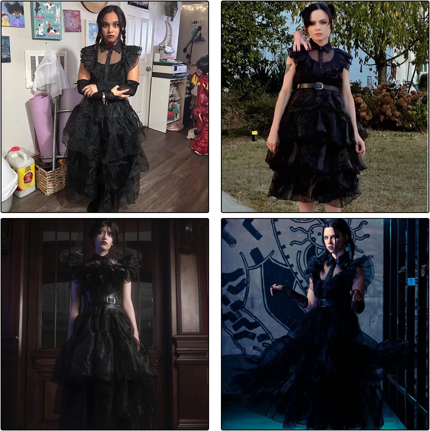 Mrsclaus Mercoledì Costume da donna nero gotico abito adulto mercoledì famiglia cosplay vestito con parrucca collana forcina calzini per carnevale Halloween