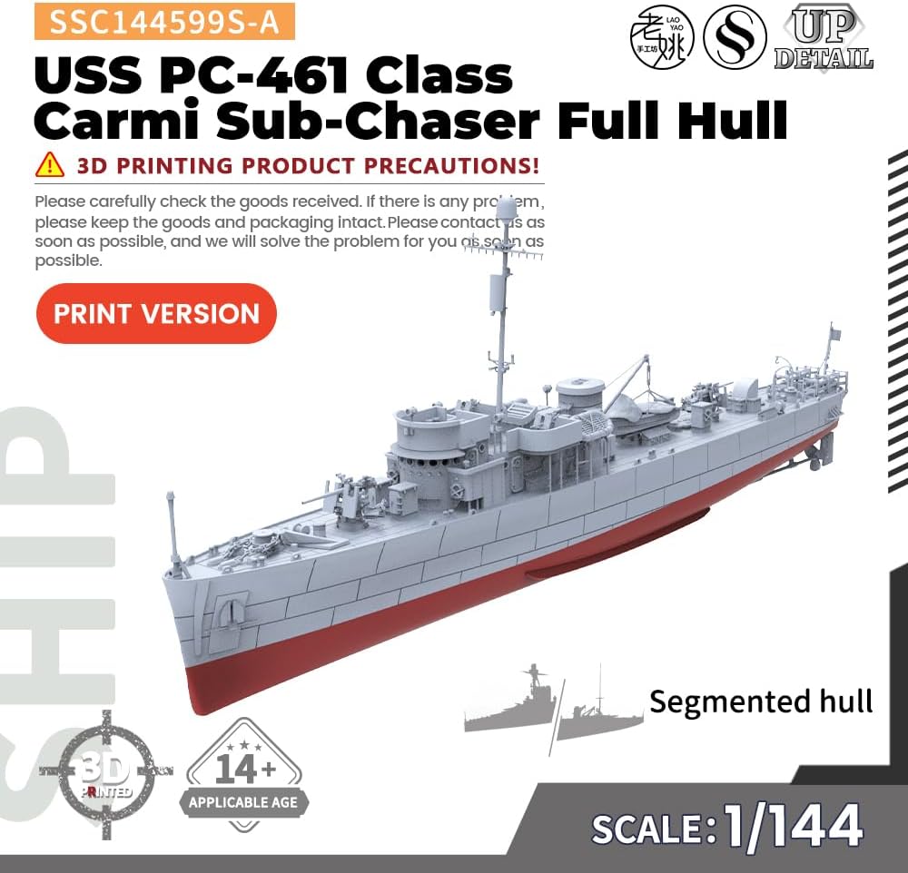 MRY-SFW 1/144Military Model Kit USS PC-461 Classe Carmi Sub-Chaser Scafo Completo
