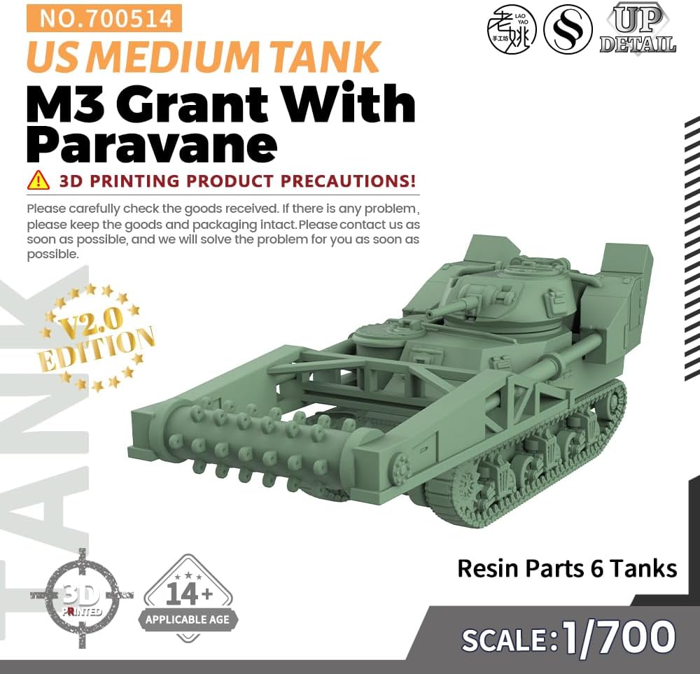 MRY-SFW 1/700Military Model Kit US M3 Grant con Paravane Medium Tank