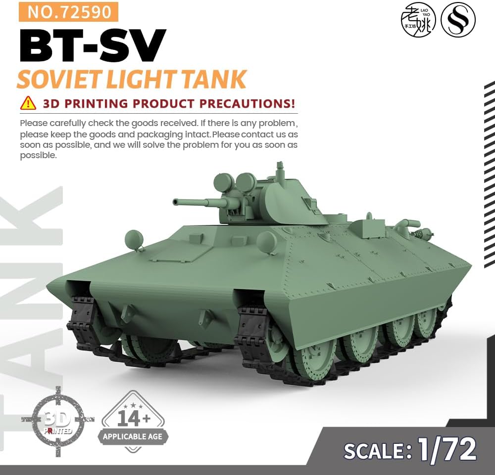 SSMODEL SS72590 Kit modello militare 1/72 da 25 mm Rapporto serbatoio leggero BT-SV sovietico: 1/72 Caratteristiche: Non dipinto Tema: Militare Materiale: Resina verniciata 3D