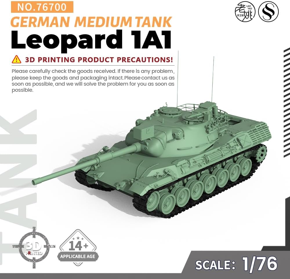 SSMODEL SS72700 Kit modello militare 1/72 25mm Leopardo tedesco 1A1 Rapporto serbatoio medio: 1/76 Caratteristiche: Non dipinto Tema: Militare Materiale: Resina verniciata 3D