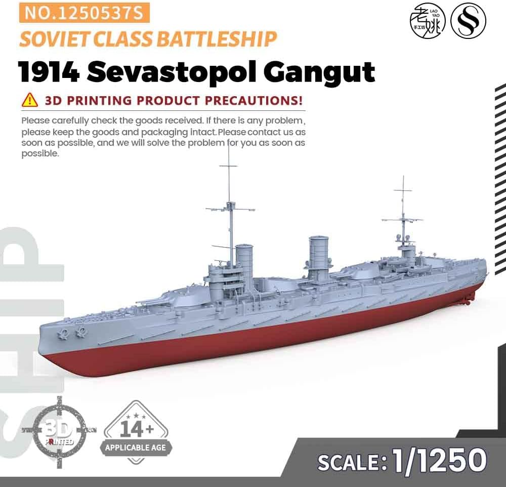 Kit modello militare Soviet 1914 Sevastopol Gangut Class Battleship Rapporto scafo completo: 1/1250 Caratteristiche: Non dipinto Tema: Militare Materiale: Resina dipinta 3D