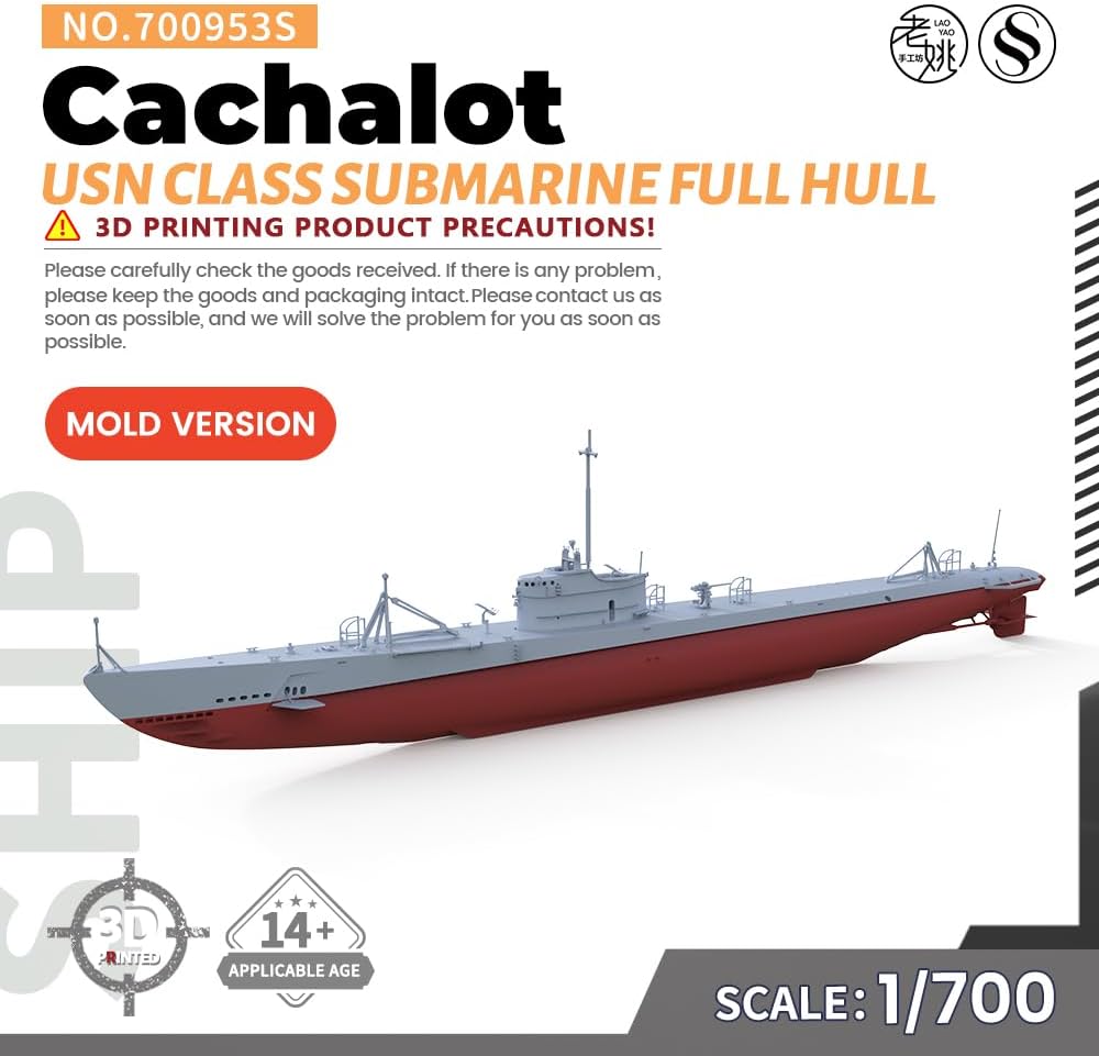 Kit modello militare Sottomarino USN Cachalot Class Rapporto scafo completo: 1/700 Caratteristiche: Non dipinto Tema: Militare Materiale: Resina verniciata 3D