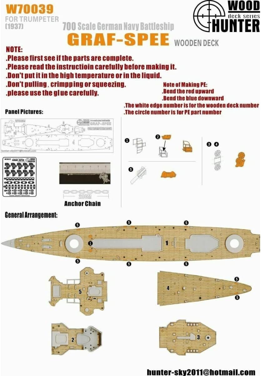 Hunter W70039 1/700 Ponte in legno tedesco GRAF-SPEE FOR TRUMPETER 05773 Rapporto: 1/700 Caratteristiche: Non dipinto Tema: Militare Materiale: Resina dipinta 3D
