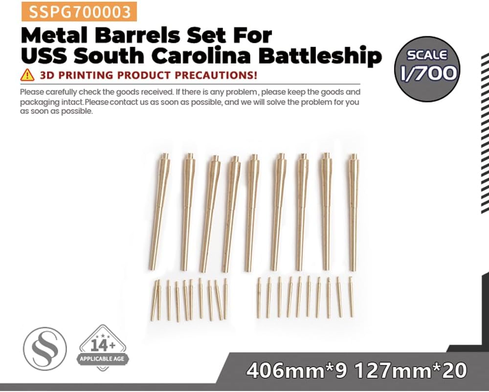 Set di botti di metallo per la corazzata USS South Carolina 406mm * 9 127mm * 20 Rapporto: 1/700 Caratteristiche: Non verniciato Tema: Militare Materiale: Resina verniciata 3D
