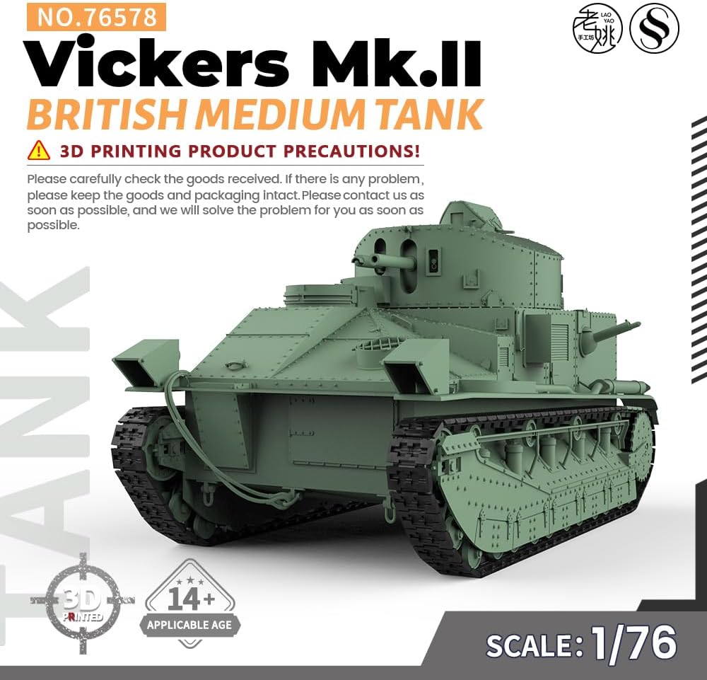 MRY-SFW Kit modello militare WarGaming da 20 mm Carro armato medio britannico Vickers Mk.II