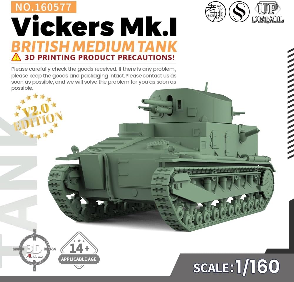 MRY-SFW SS160577 SCALA 1/160 N Kit modello militare ferroviario carro armato britannico medio Vickers Mk.I
