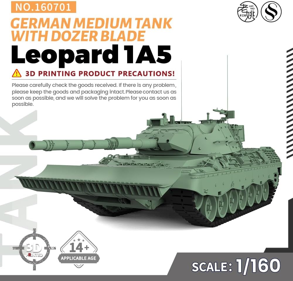 MRY-SFW SS160701 Kit modello militare ferroviario in SCALA 1/160 N Carro armato medio tedesco Leopard 1A5 con lama bulldozer