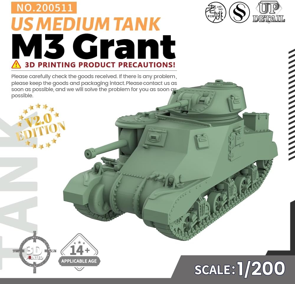 MRY-SFW SS200511 Kit modello militare 1/200 Carro armato medio US M3 Grant