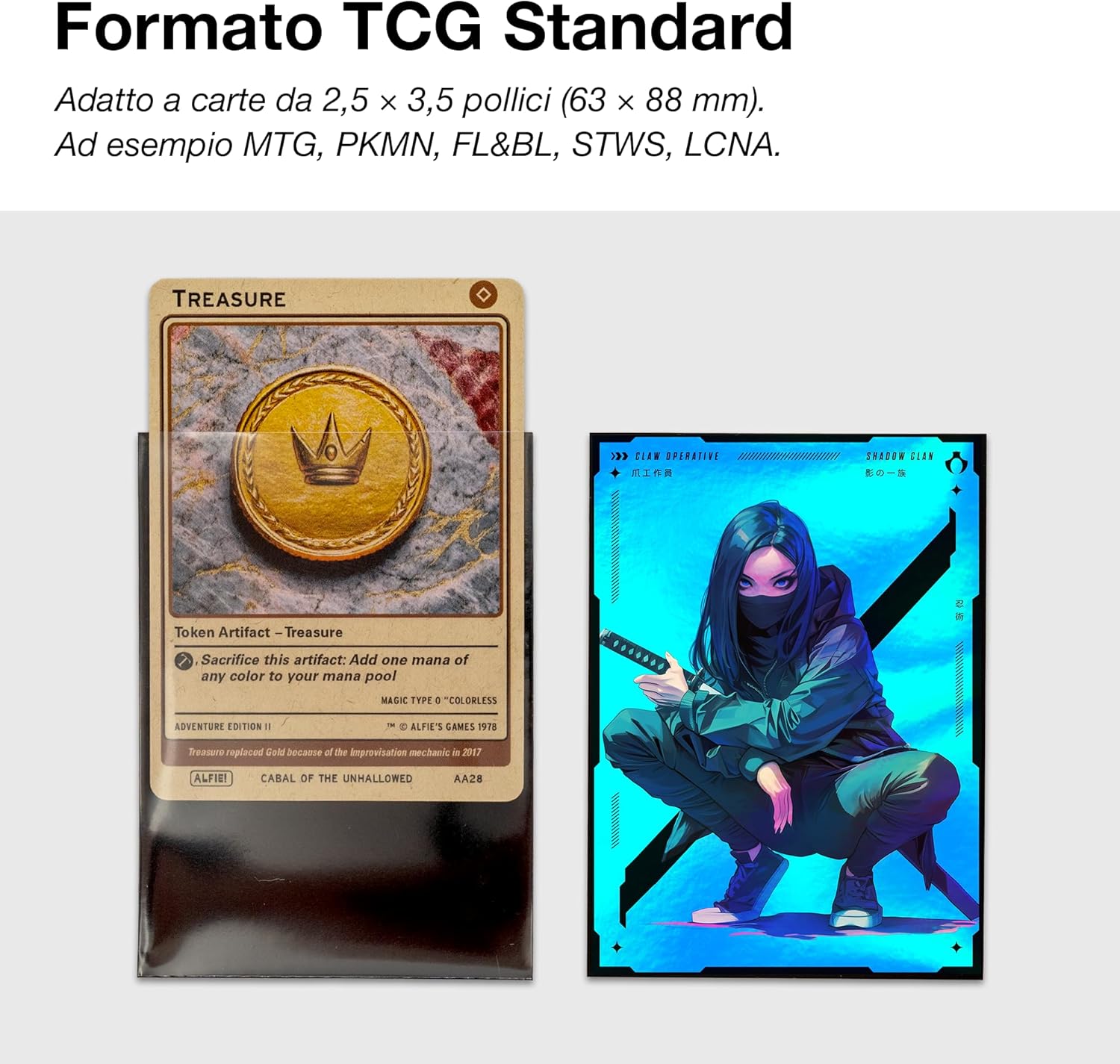 ✅ 105 custodie per carte MTG/Magic ✅ Dimensioni standard MTG – 66,2 mm x 92 mm – non graffia o ammacca, resistente all'allungamento. Finitura in lamina sul retro, trasparente sul davanti. Interno nero. ✅ Bella arte anime/manga ✅ Privo di acidi e PVC ✅ Legale in qualsiasi formato magico, come Commander/EDH, Modern, Standard, Legacy, Pioneer, Old School, Vintage ✅ Può essere manica doppia e tripla con maniche interne standard ✅ Progettato in Svezia