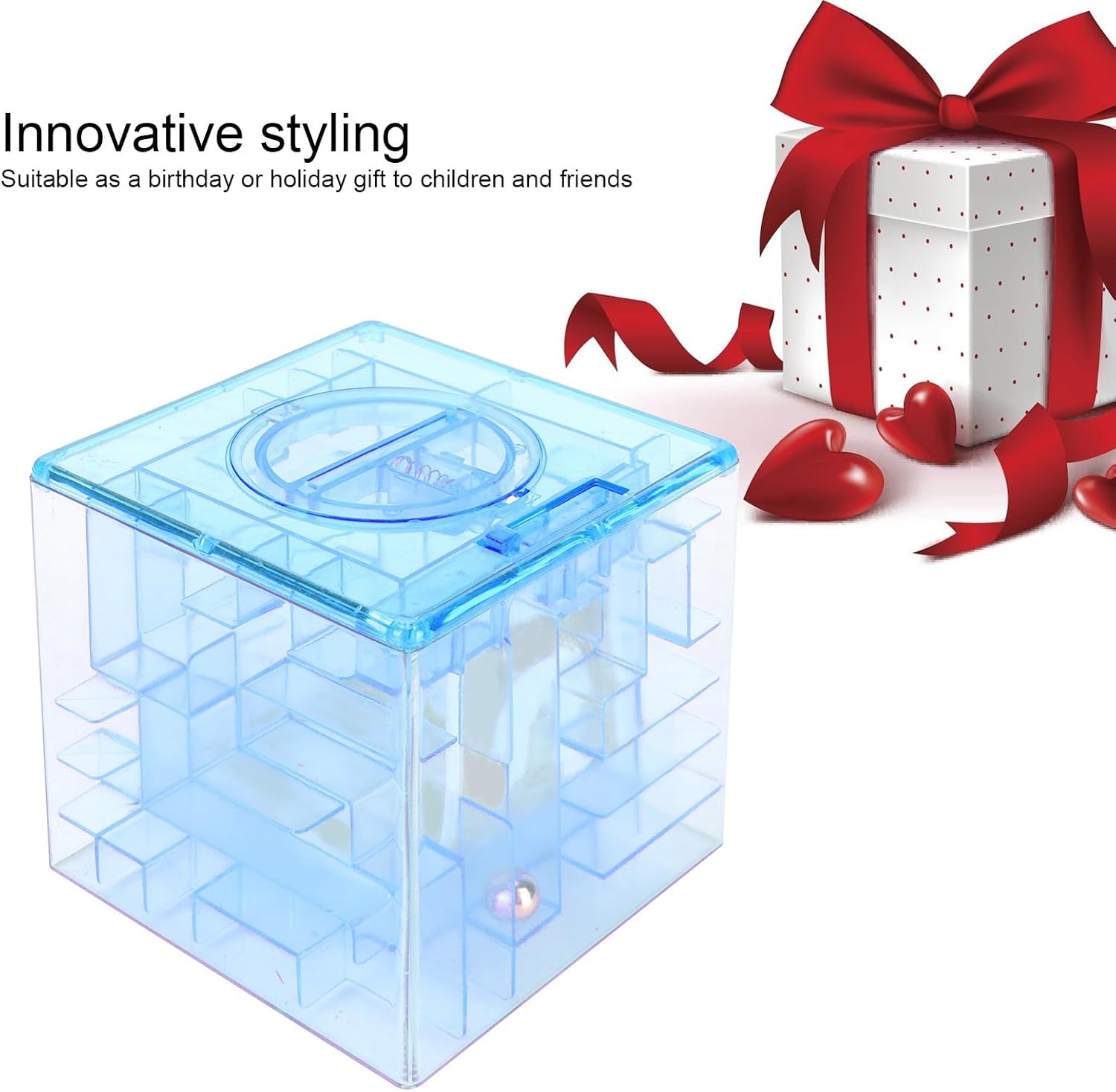 Design innovativo: questa banca di denaro si distingue con il suo innovativo design del gioco del labirinto. Permette ai bambini di depositare sia in contanti che in monete e quindi utilizzare la loro ingegnosità e la loro logica per recuperare i soldi. Il gioco Maze aggiunge un elemento di divertimento e sfida in quanto richiede la pazienza per iniziare. Sia che ci vogliono 3 minuti o 5 minuti per sbloccare, è un ottimo modo per i bambini di imparare mentre si divertono. Il design unico di Skill Develo ent: The Maze Game Coin Box non è solo un semplice contenitore di risparmio; È uno strumento educativo che può esercitare pienamente la pazienza e la creatività dei bambini. Mentre i bambini inclinano lentamente la banca del denaro per far raggiungere la palla al cursore e quindi spostare il cursore a destra fino a quando non colpisce la serratura, stanno affidando il loro problema: risolvendo le capacità. Questa mano - sull'esperienza li aiuta a sviluppare belle capacità motorie e ideale: questa piccola e squisita scatola di monete per labirinto puzzle è il per varie occasioni come compleanni, Natale, Halloween e il nuovo anno. Combina la funzionalità di un denaro: risparmiare scatola con l'intrattenimento di un gioco. I genitori possono fare questo ai loro figli, permettendo loro di risparmiare non solo ma anche di divertirsi. Il è adatto a bambini di età diverse e sicuramente porterà un sorriso sui loro volti e creerà ricordi duraturi Dimensione compatta: la banca monetaria ha una dimensione compatta, misurando circa 9x9x9 cm. La sua natura piccola e leggera, che pesa circa 170 g, rende facile per i bambini gestire e posizionare ovunque. Che si tratti del loro comodino o del loro studio, la banca del denaro non occuperà molto spazio. Questo rende conveniente per i bambini tenere i loro risparmi a portata di mano e impegnarsi nel gioco del labirinto ogni volta che vogliono Risparmio di consapevolezza: la scatola di monete del labirinto è progettata per coltivare la consapevolezza dei bambini di risparmiare denaro. Depositando contanti e monete nella scatola e quindi usando le loro abilità per recuperarla, i bambini comprendono il valore del denaro e l'importanza del risparmio. L'aspetto del gioco aggiunge un ulteriore incentivo per loro di risparmiare di più mentre non vedono l'ora di sbloccare la scatola. È un ottimo modo per infondere buone abitudini