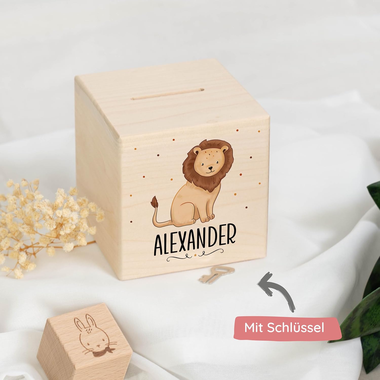 SALVADANAIO PER BAMBINI CON NOME: Il nostro salvadanaio in legno dal design amorevole è il regalo ideale per i genitori per la nascita o il battesimo. Utilizza “personalizza ora” per progettare il salvadanaio in legno configurando il motivo e il nome del bambino. SALVADANAIO IN LEGNO: Con dimensioni di 10 x 10 x 10 cm, il nostro salvadanaio offre spazio sufficiente per monete e banconote. Il salvadanaio in legno è dotato di serratura e chiave, per cui rimuovere il contenuto è un gioco da ragazzi. Utilizzando la stampa UV all'avanguardia, personalizziamo un articolo unico per te. REGALI DI NATALE PER BAMBINI: Il salvadanaio con il motivo del leone Muckelfreund è il regalo di Natale perfetto per i bambini, sia maschi che femmine. Questo salvadanaio è originale e si distingue da tutti i regali personali. Un regalo che sarà ricordato a lungo. Ideale come regalo segreto di Babbo Natale o come regalo di Babbo Natale. REGALI NASCITA: Cerchi un regalo nascita con un nome? Allora il nostro salvadanaio Muckelfreunde è il regalo di nascita ideale per i genitori del neonato. Cosa potrebbe esserci di più bello di un salvadanaio personale con un nome? TROVATO: Probabilmente hai cercato "salvadanaio per bambini", "regalo di Natale per bambini", "regali di compleanno", "regali di Natale per ragazze", "salvadanaio per bambini con serratura", "salvadanaio per bambini con chiave", "salvadanaio per bambini", "salvadanaio con nome" o "regali significativi per una nascita". Allora abbiamo il regalo giusto per la nascita, Babbo Natale o Natale per bambini di 2 o 3 anni.