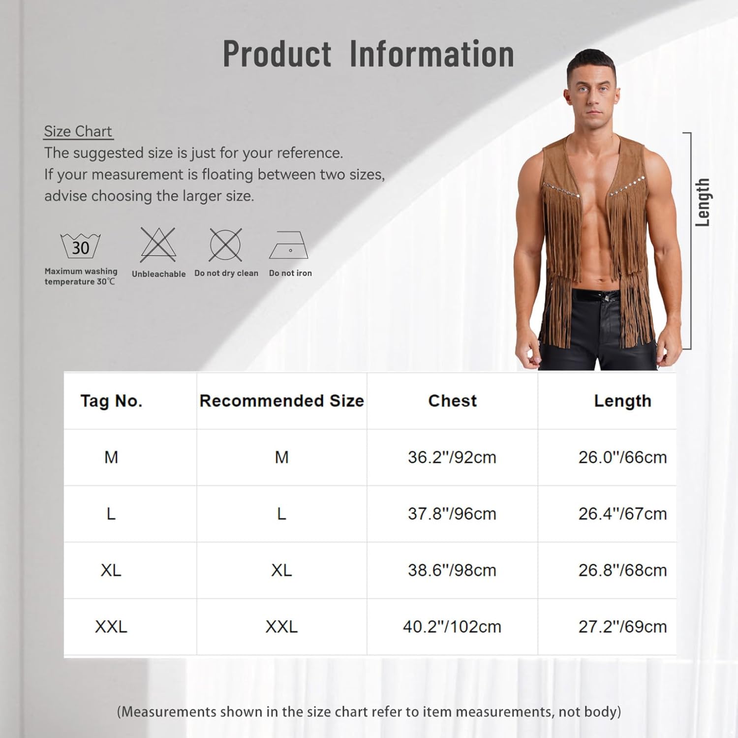 Imposta include : 1x gilet Condizione : Nuovo senza cartellino Materiale : 100% finta pelle scamosciata Etichetta No.---|---Dimensione Consigliata---|------Torace------|----Lunghezza- ------M---------|--------------M-------------|----36.2''/92cm---|---26.0''/66cm ------L---------|--------------L-------------|----37.8''/96cm---|---26.4''/67cm ------XL--------|-------------XL-------------|----38.6''/98cm---|---26.8''/68cm -----XXL--------|-------------XXL------------|---40.2''/102cm---|---27.2''/69cm