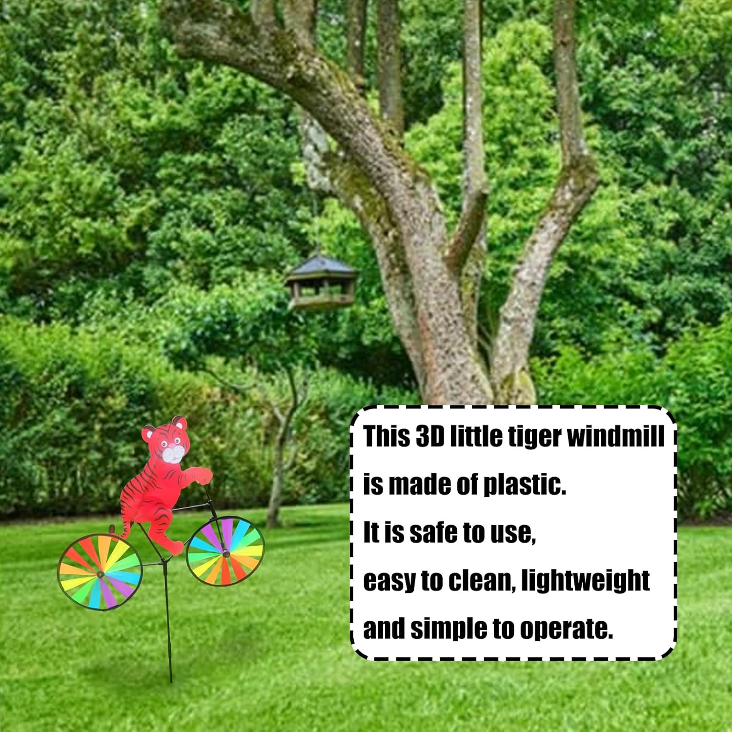 Ideale per famiglie, appassionati di campeggio e influencer dei social media Migliora la festa in cortile o la strada in cortile per girare il mulino a vento iridescente che porta felicità sia a bambini che a adulti Dispone di animali in bicicletta per una facile conservazione e una decorazione versatile all'aperto Vibranti mulini a vento a tigri con picchetti resistenti creano decorazioni spettacolari mentre resistono ai forti venti per migliorare il tuo giardino o cortile Progettato per una facile installazione e resistenza alle intemperie tutto l'anno, questi stravaganti mulini a vento mantengono le tonalità vivaci del sole e della pioggia per un paesaggio attraente di lunga durata