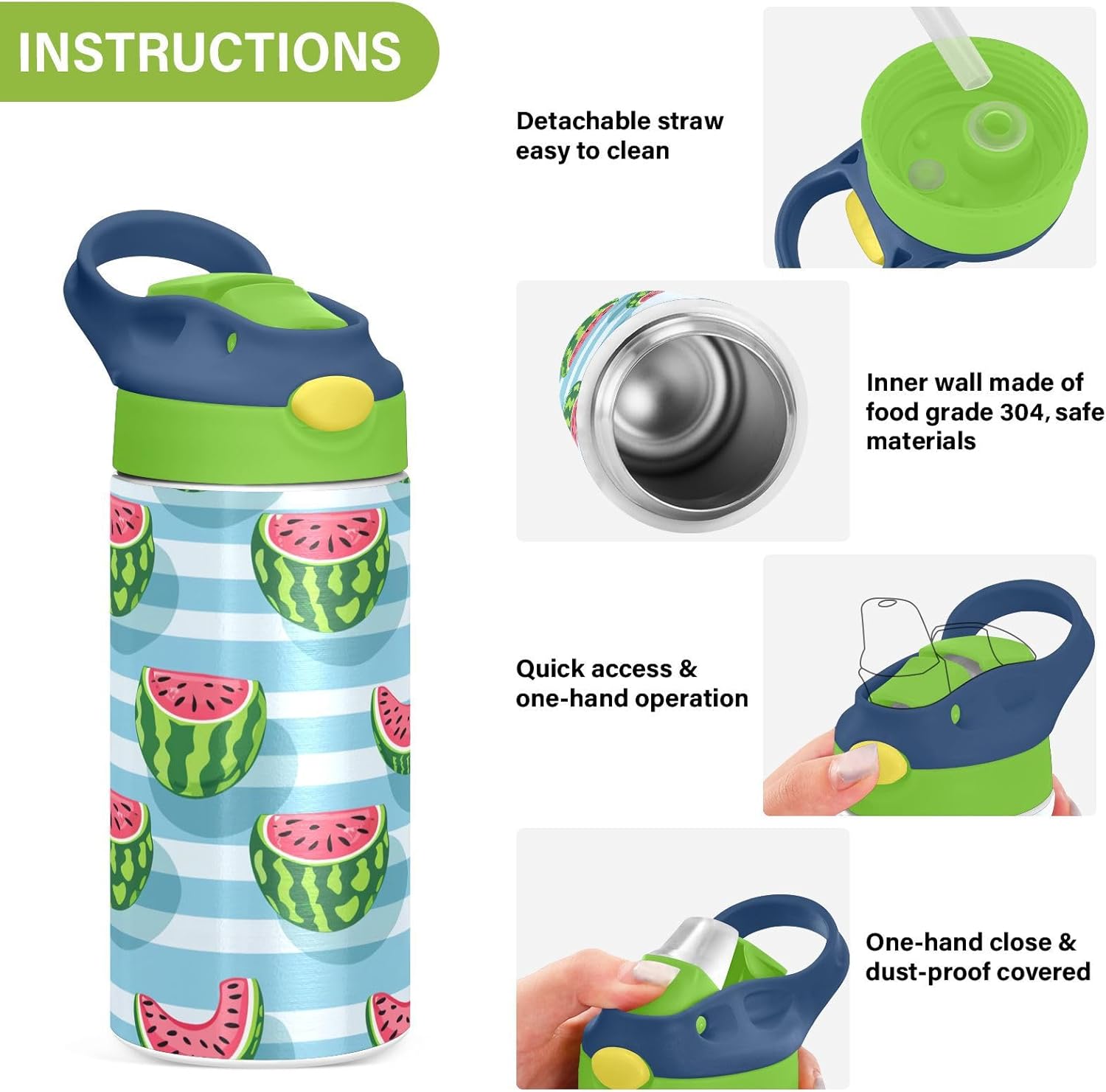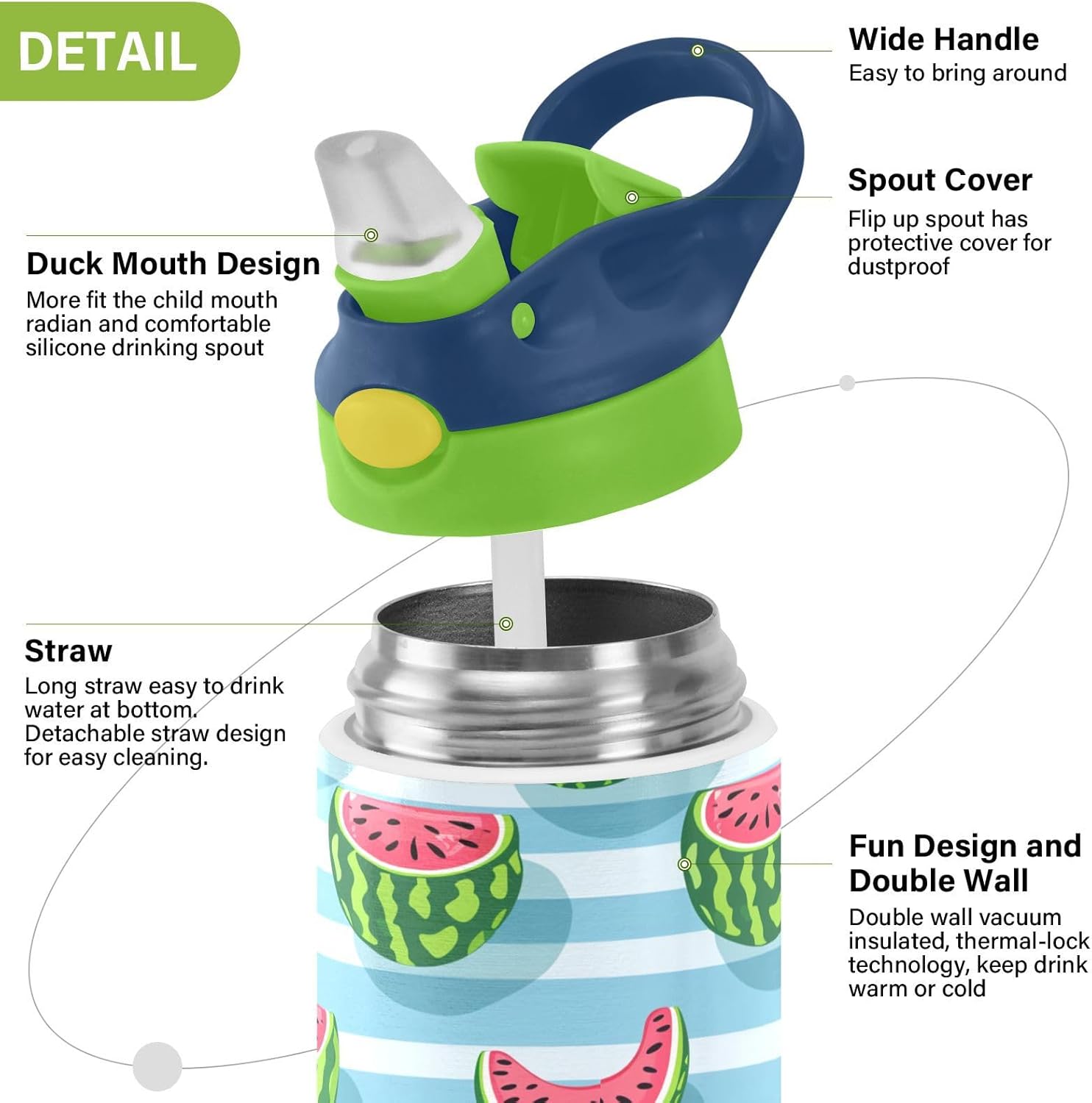 Materiale di sicurezza: il corpo in Tritan e il beccuccio in silicone alimentare garantiscono durata e sicurezza. Contiene 350 ml di acqua, perfetto per l'idratazione quotidiana. Non adatto a bambini di età inferiore ai 3 anni Design portatile: l'ampio manico è facile da impugnare per i bambini e il gancio del coperchio consente di attaccare la bottiglia d'acqua agli zaini. Niente più bottiglie perse durante le gite sul campo o le attività dopo la scuola. Funzionamento amichevole: il becco d'anatra si adatta bene, con una copertura antipolvere. L'interruttore a pulsante di Water Bottle Kids consente l'uso con una sola mano, in modo che i bambini possano idratarsi senza mettere giù i loro giocattoli o attrezzi sportivi. Blocco di sicurezza: il blocco del pulsante impedisce lo scoppio accidentale del becco d'anatra. Previene le perdite quando viene gettato nello zaino, mantenendo asciutti snack e compiti. Facile da pulire: tutte le parti della borraccia possono essere smontate per evitare l'accumulo di sporco. Pulire con detergente neutro e acqua calda.