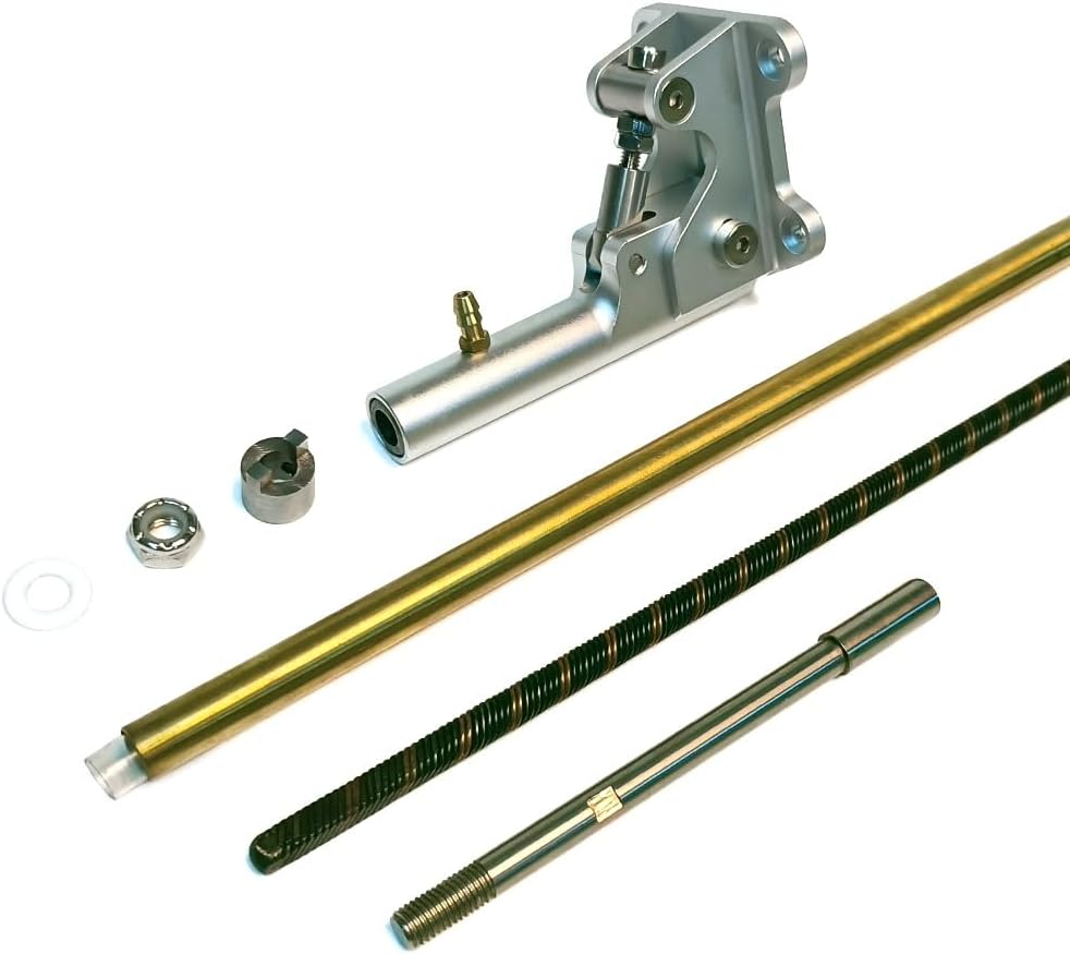[Three Size Options] 4.0mm, 4.76mm and 6.35mm shafts included. [Complete Kit] Contains all brackets, shafts, bushings and hardware. [Versatile Fit] Accommodates various hull lengths and designs. [Rugged Build] Wear-resistant materials for long service life. [Easy Assembly] Pre-matched components for straightforward installation.