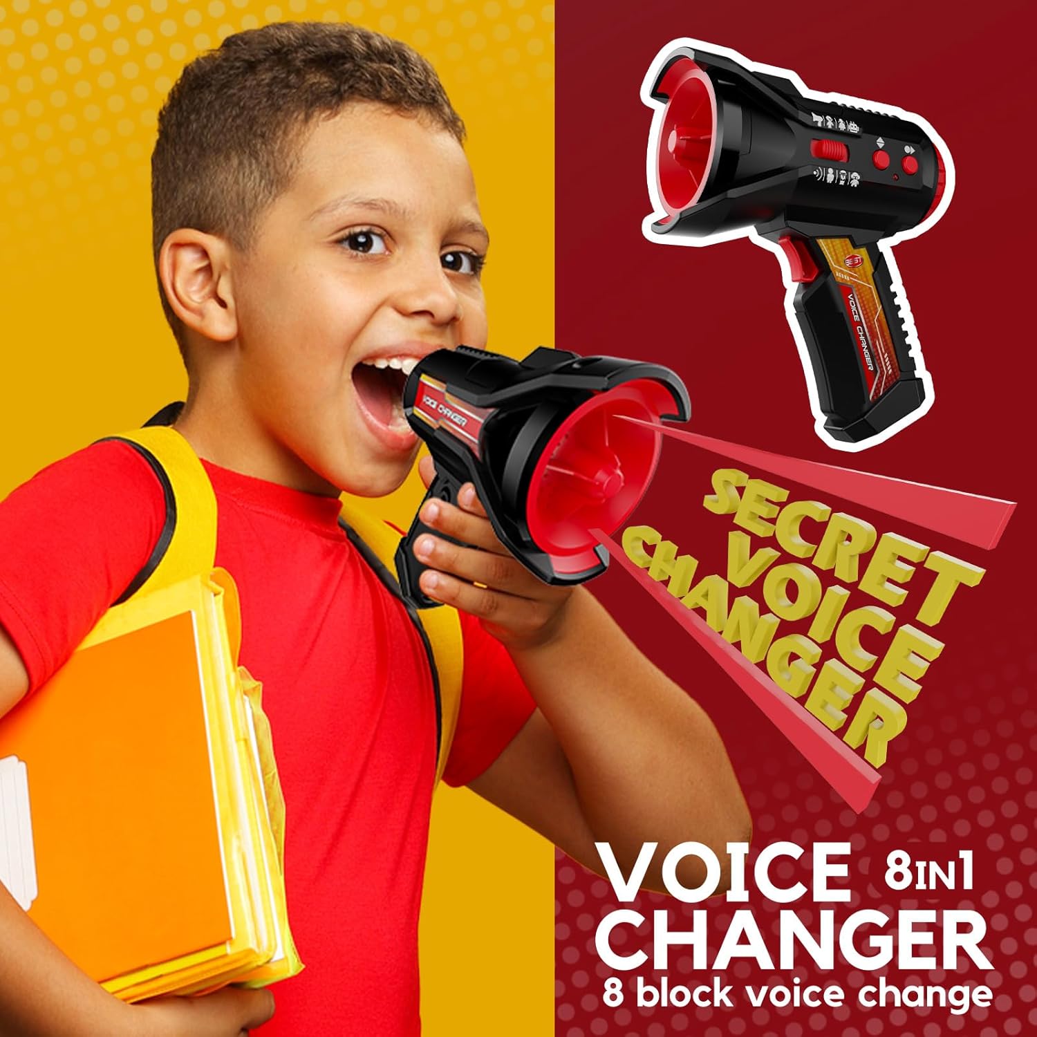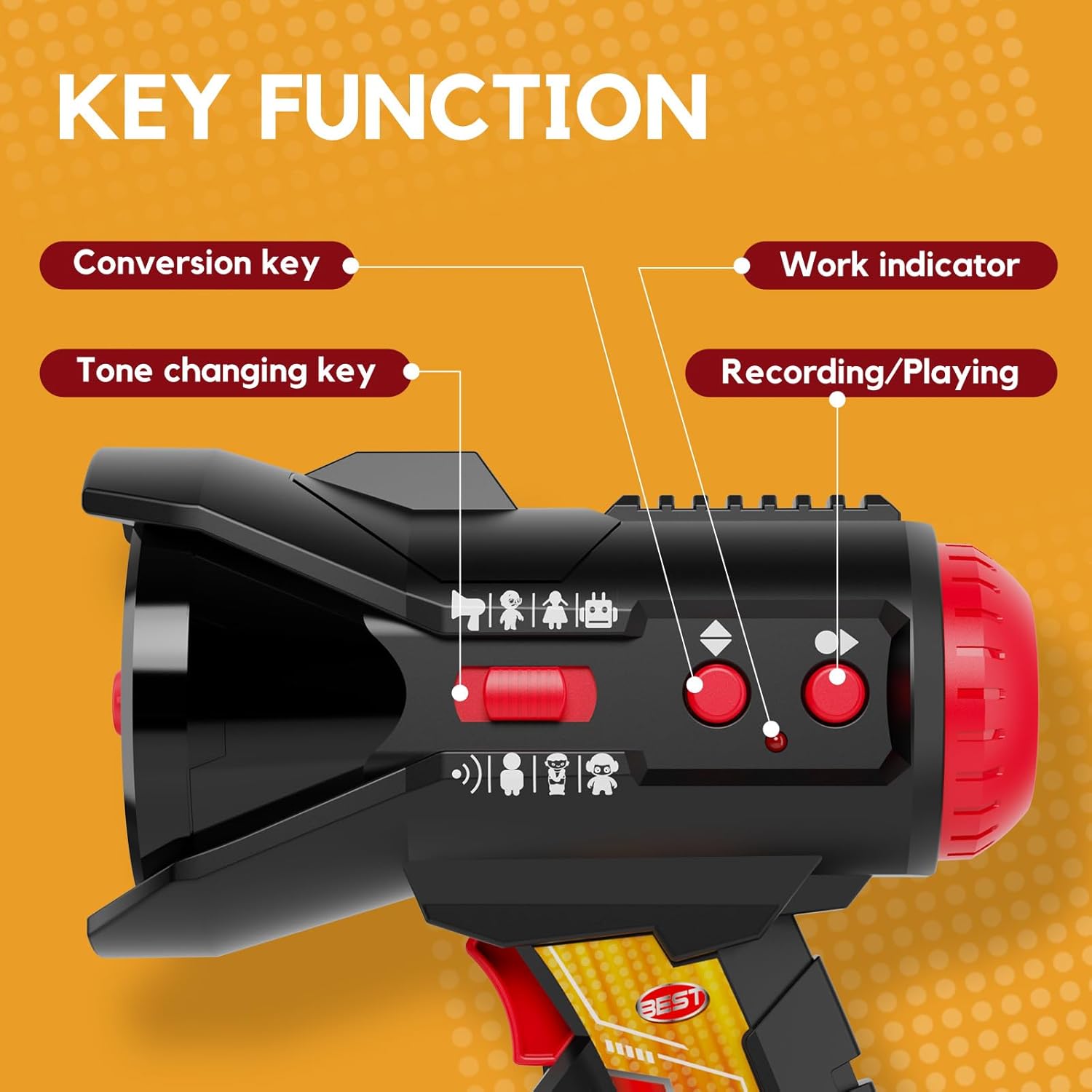 Alimentato da batterie: richiede 2 batterie AA (non incluse) Emozionanti effetti vocali: porta divertimento senza fine con 8 diversi effetti vocali come robot, alieno, scoiattolo e altro ancora! Funzioni versatili: non solo un cambio vocale, funziona anche come registratore e megafono per amplificare la voce. Design portatile: compatto e leggero, perfetto per giochi indoor/outdoor, feste e pigiama party. Funzionamento facile: i semplici controlli a pulsante consentono ai bambini dai 3 anni in su di passare senza sforzo da una modalità all'altra.