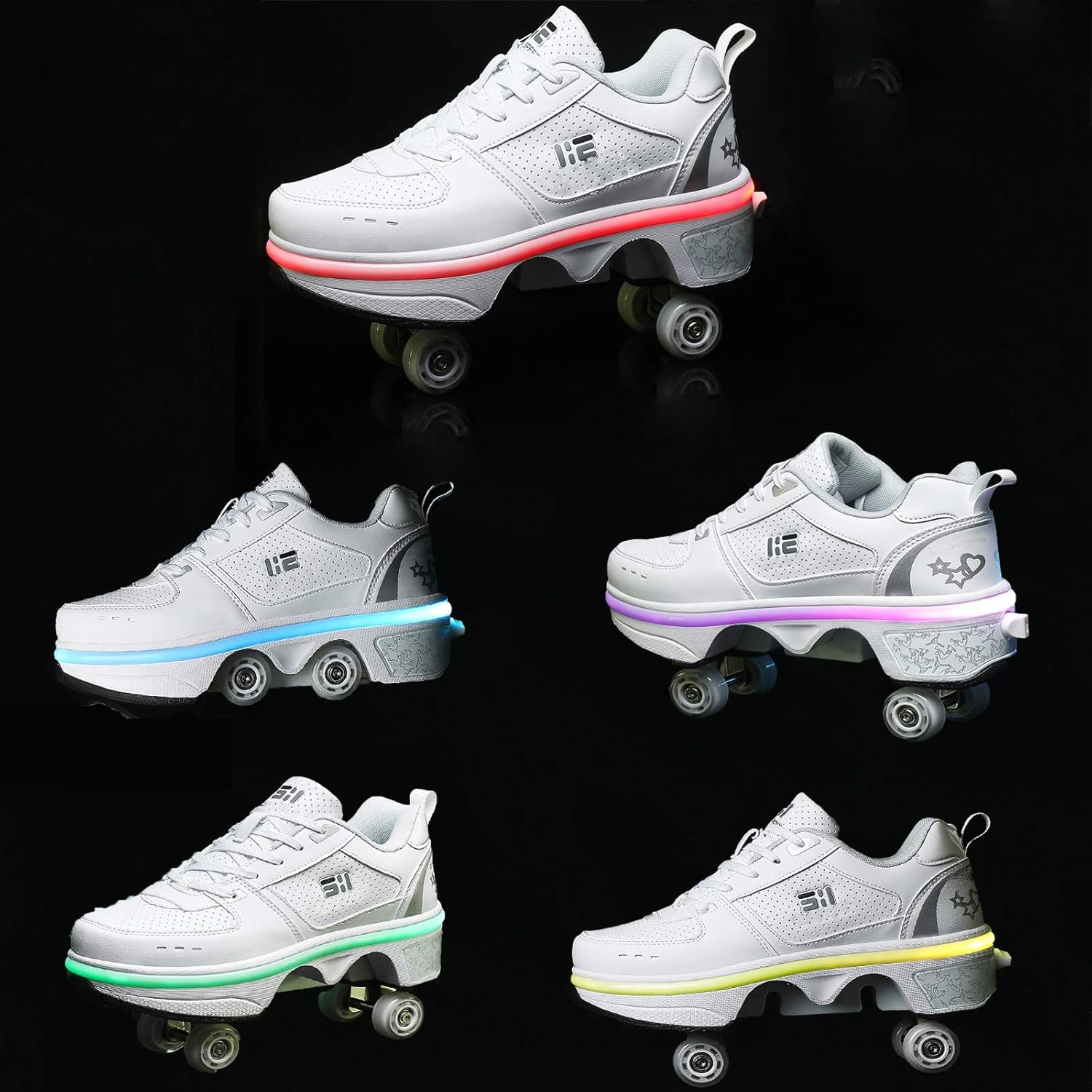 ★ Pattini Due In Uno: I Pattini Multiuso Regolabili Sono Diversi Dai Pattini A Rotelle Tradizionali Sul Mercato. Le Ruote Nascoste Possono Essere Nascoste Come Normali Scarpe Da Ginnastica, Quindi Puoi Regolare I Pattini A Rotelle, Che Non Solo Possono Pattinare Ma Anche Correre. ★ Modalità Colorata: Puoi Goderti Vari Colori (totale 7 Colori, 4 Modalità!) Luce LED, Cammini Sulla Strada, Le Scarpe Si Illuminano. C'è Un Pulsante Sul Retro Della Scarpa, Premilo E La Ruota Si Aprirà. Premi E Tieni Premuto Il Pulsante Per Spingere Il Rullo Nella Piastra Inferiore E Rilasciarlo. ★ Materiali Di Alta Qualità: I Pattini A Rotelle Regolabili Multifunzionali Sono Realizzati In Microfibra, Suola In Gomma E Ruota In PU. Non Dobbiamo Solo Prestare Attenzione Alla Capacità Portante Della Ruota, Ma Anche Prestare Attenzione Alla Selezione Del Materiale Della Tomaia Da Produrre Pattini A Rotelle Di Alta Qualità. ★ Protezione Del Piede: Pattini A Rotelle Multiuso Regolabili Con Lacci Tradizionali.Come Con Le Scarpe Da Ginnastica, Puoi Regolare I Lacci Per Una Sensazione Più Confortevole.Pulsante Invisibile Dal Design Unico Per Evitare L'apertura Accidentale: C'è Un Bottone Sul Retro Della Scarpa ★ Regali Speciali: I Pattini Sono Il Regalo Perfetto Per Compleanni, Spettacoli, Halloween, Ringraziamento, Natale E Altre Celebrazioni.
