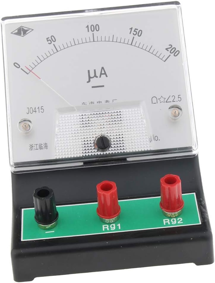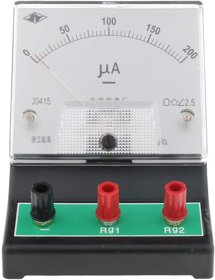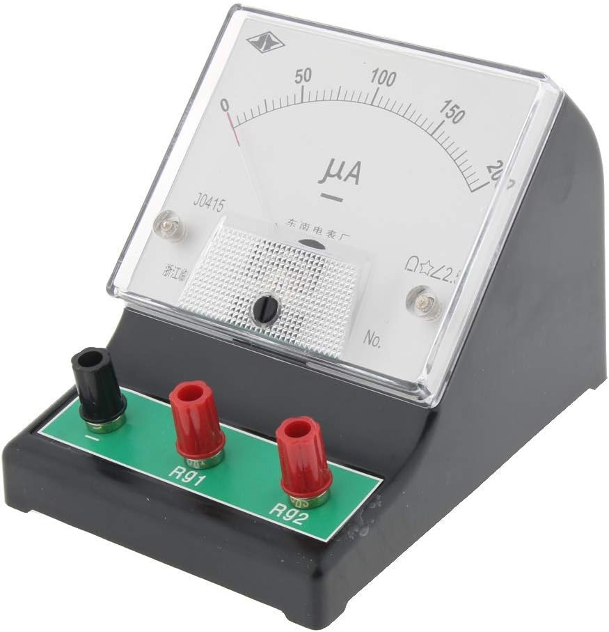 Questo strumento può essere convertito in un amperometro, voltmetro o multimetro Campo di misura: 0 - 200 ?A / microampere, risoluzione 2,5 ?A Resistenza interna RG1 è 500 ohm, RG2 è 2500 ohm; VG1=100mV, VG2=500mV Utilizzato per rilevare piccole correnti e deboli forze elettromotrici nei circuiti CC durante esperimenti, come termocoppie, effetti fotoelettrici Con tre terminali, pacchetto con istruzioni schematiche