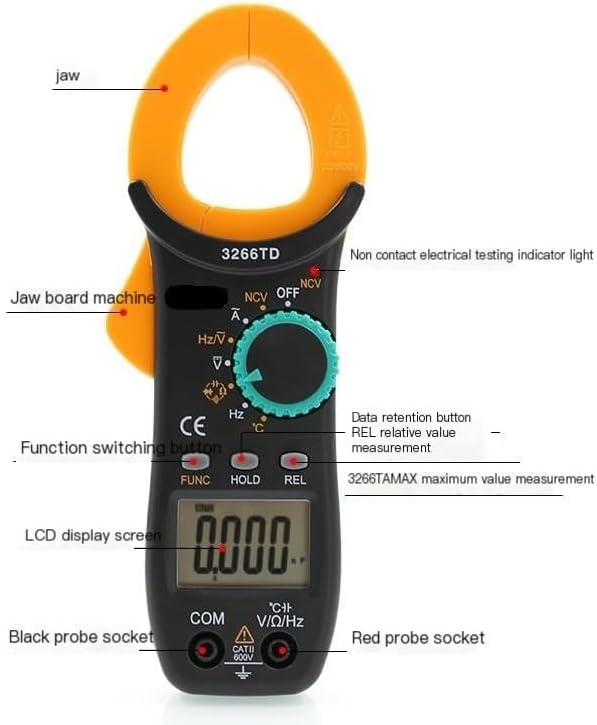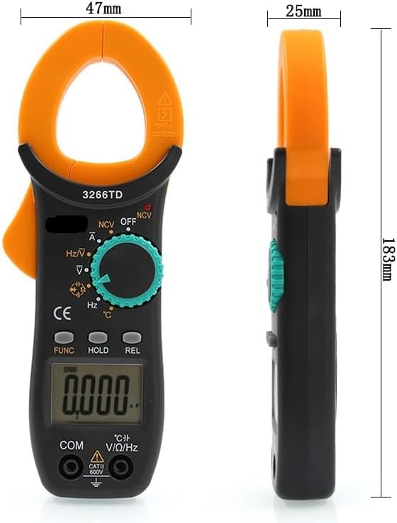 Pinza amperometrica digitale ad alta precisione for misurazioni elettriche accurate Misura la corrente AC/DC, la temperatura e la capacità for applicazioni versatili Design intuitivo con ampio display LCD for una facile lettura Compatto e portatile, perfetto for elettricisti e amanti del fai da te Caratteristiche di sicurezza tra cui protezione da sovraccarico for un utilizzo affidabile