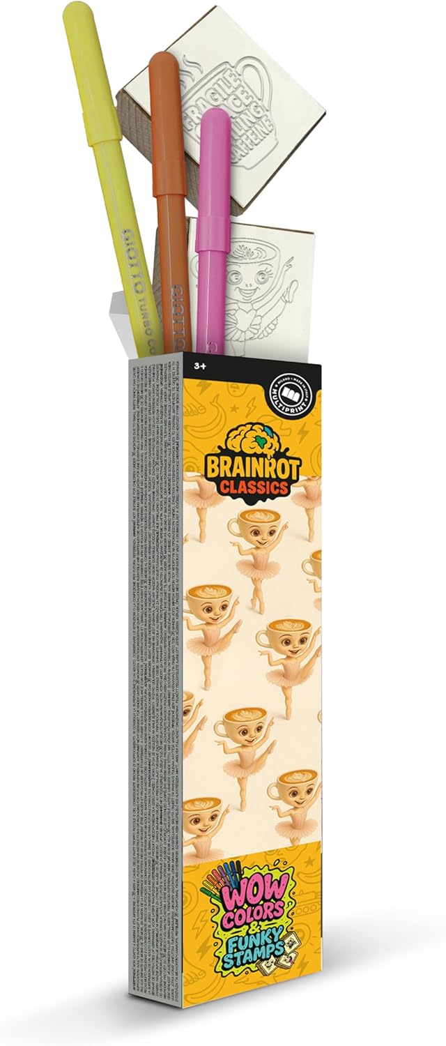 Divertimento creativo per veri fan dei meme: Il set include Pennarelli Colorati e timbri ispirati ai personaggi più amati del brainrot italiano. Ideali per disegnare, personalizzare quaderni e inventare storie assurde! Personaggi iconici in stile brainrot: Da shark Trallalero Trallalà a ballerina Cappuccina, passando per bombardilo Cocodrilo e brr brr Patapim – sono tutti qui! Ogni timbro è un personaggio diverso, pronto a far ridere. Regalini perfetti per feste e compleanni: Un’idea originale per sorprendere gli invitati. Piccoli, divertenti, facili da distribuire: il gadget perfetto per compleanno bambini e ragazzi. Timbri colorati e sicuri: L’inchiostro è adatto all’uso quotidiano, non macchia e rende ogni timbrata un'esplosione di colore. Ottimi per diari, agende, quaderni e personalizzazioni. Il regalo ideale per veri brainrot lover: Dai gadget fine festa ai piccoli premi creativi, questo set è pensato per chi vive di meme e ama portare un po’ di follia anche sui banchi di scuola.