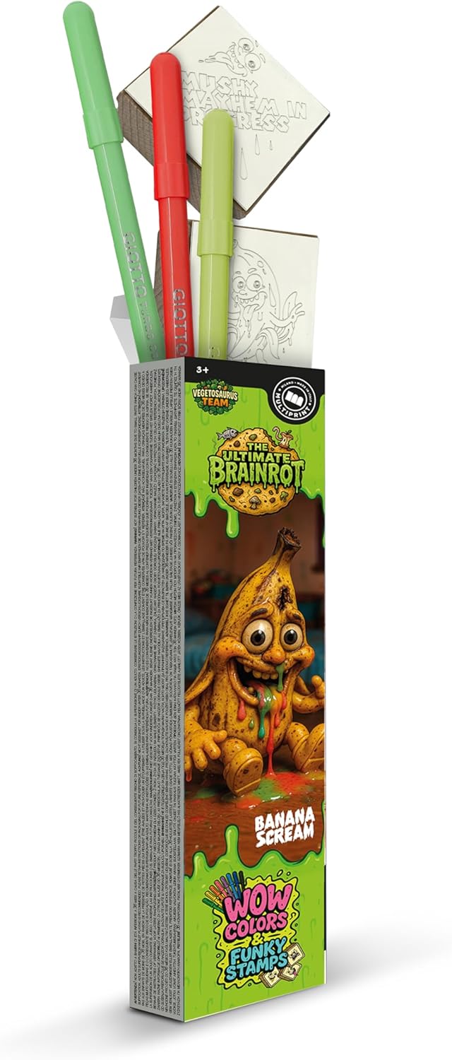 Divertimento creativo per veri fan dei meme: Il set include Pennarelli Colorati e timbri ispirati ai personaggi più amati del brainrot italiano. Ideali per disegnare, personalizzare quaderni e inventare storie assurde! Personaggi iconici in stile brainrot: Da shark Trallalero Trallalà a ballerina Cappuccina, passando per bombardilo Cocodrilo e brr brr Patapim – sono tutti qui! Ogni timbro è un personaggio diverso, pronto a far ridere. Regalini perfetti per feste e compleanni: Un’idea originale per sorprendere gli invitati. Piccoli, divertenti, facili da distribuire: il gadget perfetto per compleanno bambini e ragazzi. Timbri colorati e sicuri: L’inchiostro è adatto all’uso quotidiano, non macchia e rende ogni timbrata un'esplosione di colore. Ottimi per diari, agende, quaderni e personalizzazioni. Il regalo ideale per veri brainrot lover: Dai gadget fine festa ai piccoli premi creativi, questo set è pensato per chi vive di meme e ama portare un po’ di follia anche sui banchi di scuola.