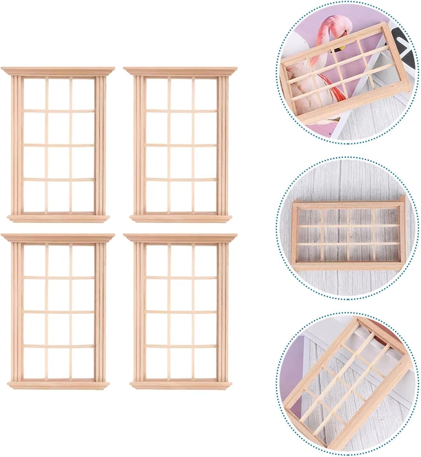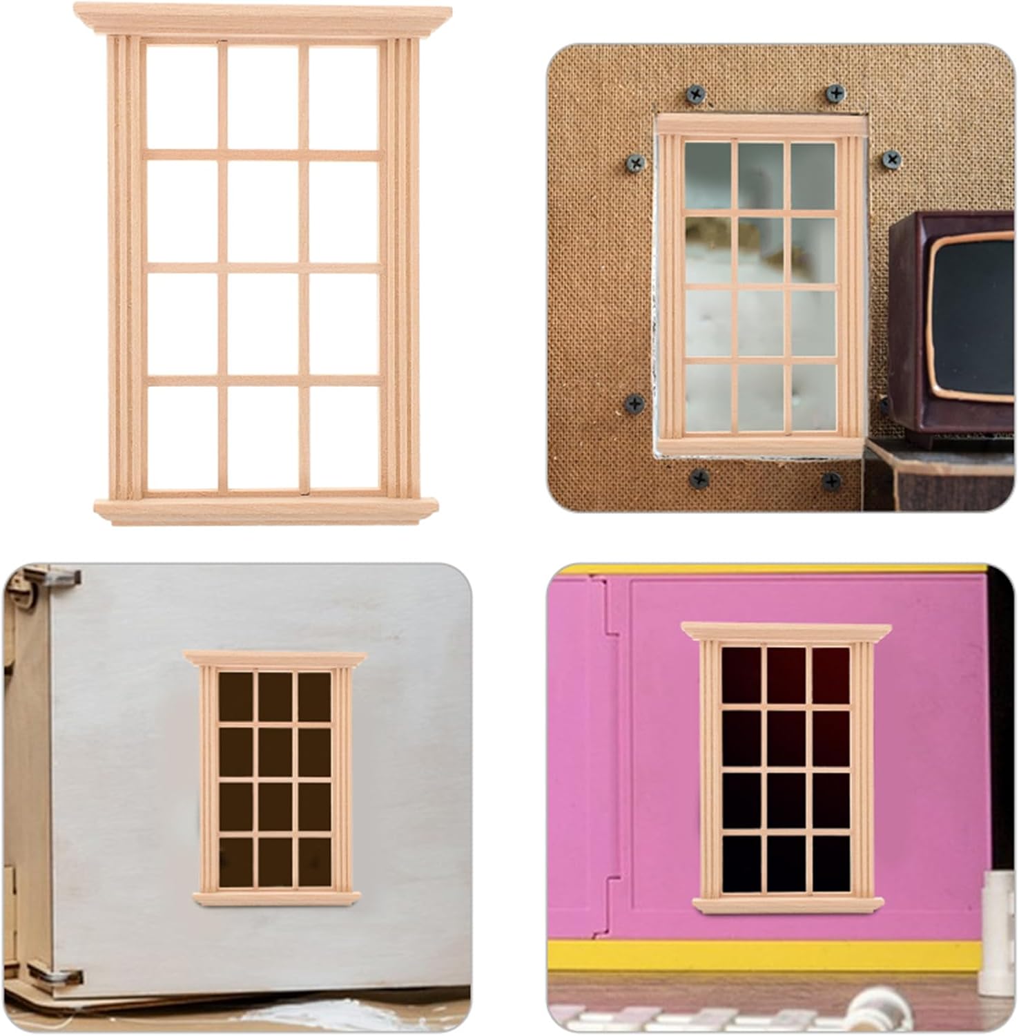Per l'uso come decorazione per la casa, per l'ufficio, per fare regali, esporre mostre e dimostrazioni educative, aggiungendo fascino a qualsiasi ambiente Le dimensioni consentono una facile portabilità e montaggio, assicurando che la tua finestra in miniatura impressioni con la loro autenticità e il loro bell'aspetto Queste finestre in scala 1 12 presentano un design elegante, che aggiunge a qualsiasi piccola casa con artigianato e resistenza all'usura Per bambini e adulti che amano progetti artistici, collezionano modelli o migliorano la loro collezione di mobili per case delle bambole Migliora la tua casa delle bambole con la nostra finestra in miniatura da 4 pezzi, realizzata in legno per una maggiore durata e realistica per la decorazione della tua casa in miniatura