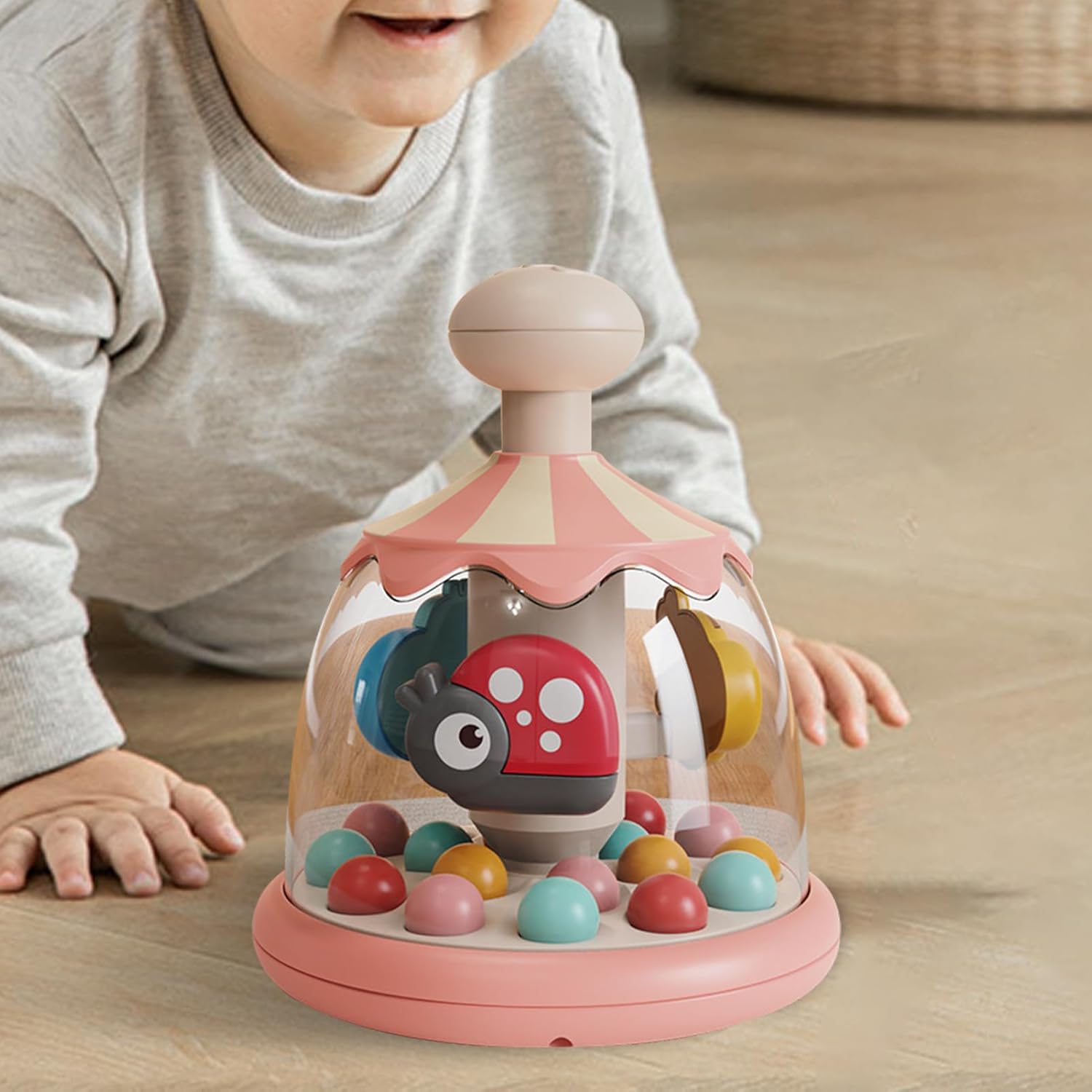 Sicuro e sicuro: la sicurezza dei vostri bambini è garantita con questo carosello per la stampa, grazie alla sua struttura resistente e al design anti-caduta senza scivolare. Perfetto per il gioco al coperto e all'aperto, è il compagno ideale per lo sviluppo dei vostri bambini Stimolazione migliorata: premi la parte dei nostri bambini Premi il carosello per attivare i colori vivaci e i suoni giocosi che massimizzano lo sviluppo sensoriale del tuo bambino, invitando all'esplorazione e alle abilità cognitive appuntite Lasciate che i vostri bambini giochino ovunque: portare il divertimento e dare ai vostri bambini la gioia del tempo di gioco ovunque con questo carosello. La sua maniglia facile da afferrare e il design leggero lo rendono perfetto per sedersi in posizione verticale e giocare comodamente Coordinazione mano-: quando i bambini premono la parte della nostra giostra, la palla di rimbalzo aiuta a migliorare la coordinazione mano e stimolare i loro sensi, dando loro un vantaggio nel loro viaggio generale di sviluppo del bambino Migliorare la creatività: i nostri giocattoli innovativi incoraggiano l'apprendimento della prima infanzia e stimolano l'immaginazione, portando a un migliore sviluppo cognitivo. Il tuo piccolo bambino imparerà attraverso il gioco mentre sviluppa la forza delle mani e si diverte