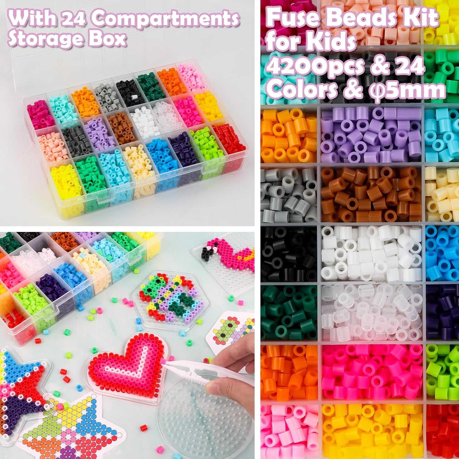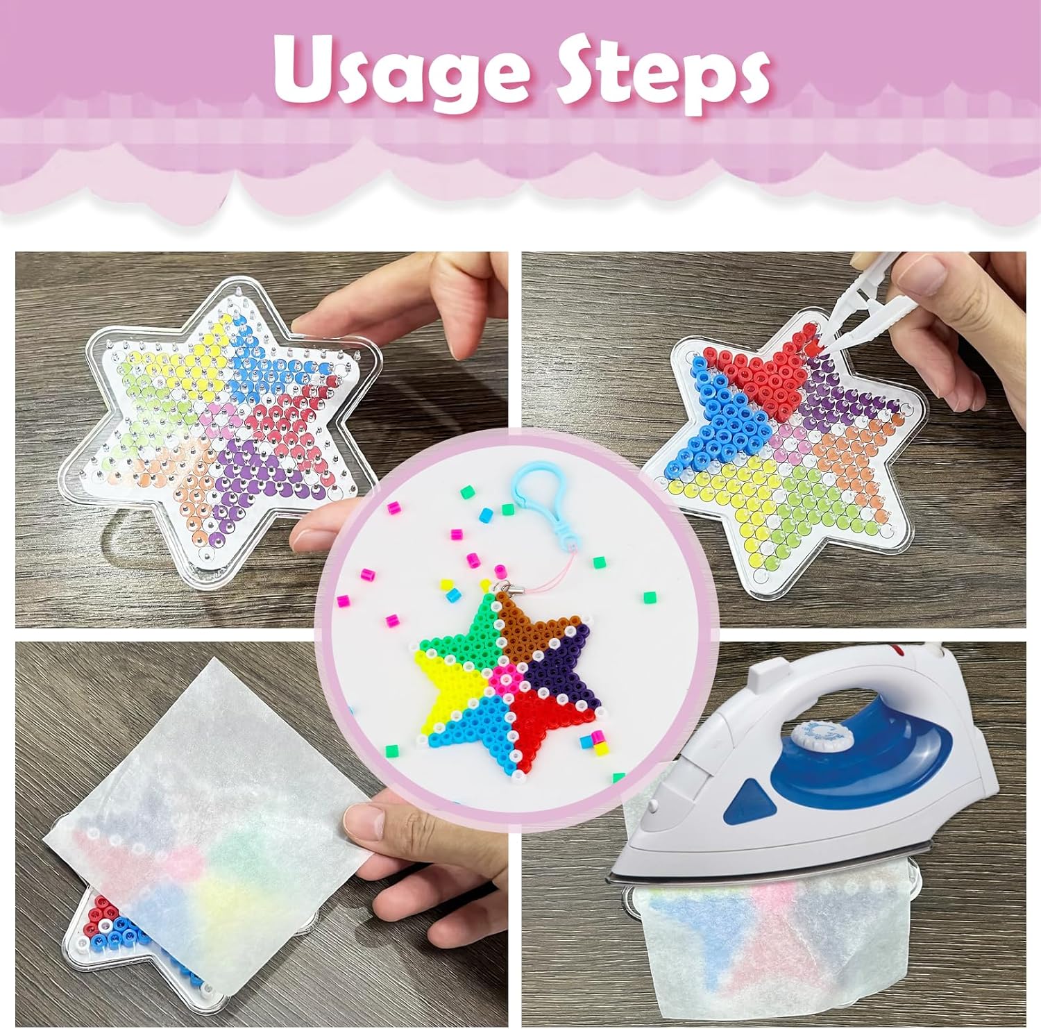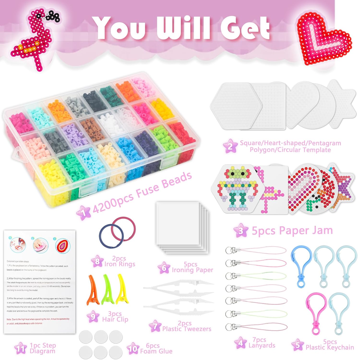 Set di perline da stirare 4200 pezzi: 24 colori, 4200 perline. I colori ricchi offrono una varietà di scelte. Include vari accessori, 5* tavolette per perline da stirare (quadrato, cuore, pentagramma, cerchio, esagono), 5* carta da stiro, 5 piccoli modelli, 5 portachiavi, 7* cordoncini, 3* mollette per capelli, 2* pinzette, 2* portachiavi, 6* schiuma adesiva e 1 manuale di istruzioni Modelli inclusi: Questo perline a fusione kit completo può creare molti motivi, come pupazzo di neve, cuori d'amore, pentagrammi, fenicotteri, robot. Stimola l'immaginazione e la creatività del bambino. Viene fornito con un portachiavi e un cordino, si può facilmente portare il vostro artigianato come un ciondolo con voi Materiale sicuro: Le perline a fusione sono realizzate in plastica/resina ecologica, completamente atossica e inodore. Adatto ai bambini di età superiore ai 3 anni. I bambini possono realizzare i loro lavori preferiti in modo sicuro e protetto Regalo ideale per i bambini: È un regalo ideale per i bambini che amano creare arte. Adatto sia per i ragazzi che per le ragazze, può essere regalato per il compleanno, la Pasqua, il Natale o altre feste. Il set di perline da stiro viene fornito con una scatola di plastica trasparente per ordinare e conservare le perline da stiro, rendendo i giocattoli artigianali molto puliti e ordinati Buon servizio: Se le perline a fusione 24 Colori sono danneggiate durante il trasporto, non esitate a contattarci tramite Amazon.