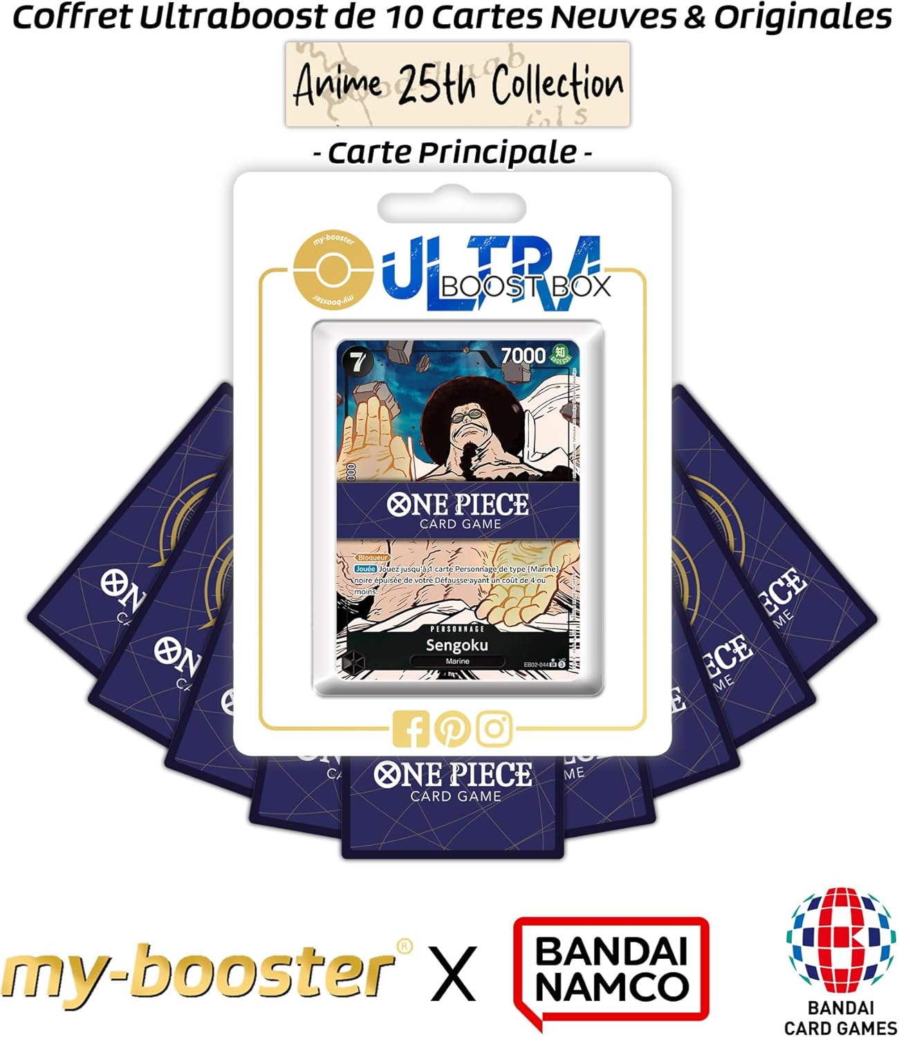 Le BOX Ultraboost contiene la carta principale sul fronte della scatola + 9 carte aggiuntive della serie One Piece EB-02 "Anime 25TH Collection" Nuove e originali carte BANDAI NAMCO
