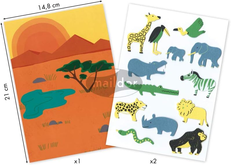 CONTENUTO: 1x confezione con 1 foglio di Sweety Stickers di My Mandarine + 1 foglio con scenari. Numero di adesivi: 28. I 1 fogli sono nel formato 14,8x21 cm. Conforme alle norme CE. Per bambini dai 3 anni in su. SCOPRI GLI ADESIVI SWEETY: Simpatici e colorati, questi animali in feltro sono molto comodi da usare grazie al materiale leggero ma spesso. Gli adesivi pretagliati sono facili da attaccare e rimuovere, per la gioia di bambini e genitori. PRATICO: gli adesivi sono riposizionabili e possono essere attaccati e staccati a piacimento. Il foglio con uno scenario incluso dà vita alla loro storia e stimola l'immaginazione dei bambini. IMPARA GIOCANDO: questi adesivi promuovono la destrezza, la concentrazione e l'immaginazione del bambino. Un'ampia varietà di materiali e figure per supportare la creatività. Design trendy e originale TEMA: Savannah