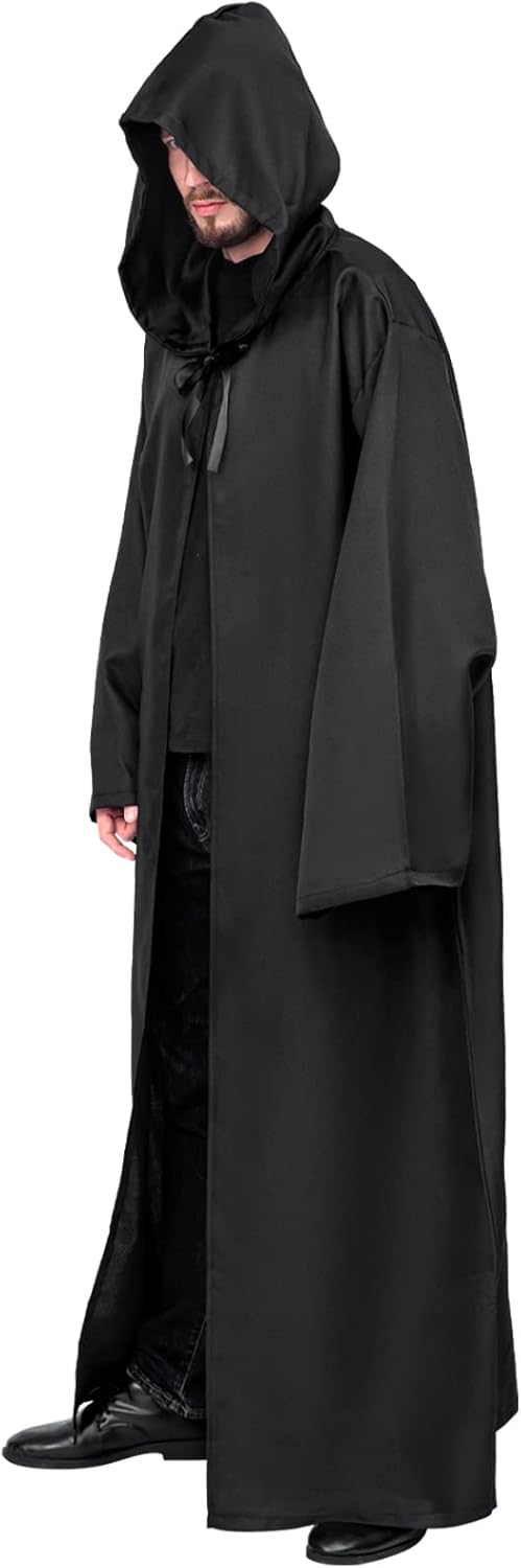 Maniche profonde sono perfette per nascondere una spada laser o due Materiale: 100% polyester fabrics. Viene con due nastri da legarsi al collo. Costume perfetto per giochi di ruolo, Halloween, carnevale, festa a tema, masquerade, personaggio gotico, Theater giocare ecc. Si prega di controllare attentamente la tabella delle taglie nella "Descrizione prodotto" PRIMA di acquistare. La confezione include: 1 x Mantello con Cappuccio.