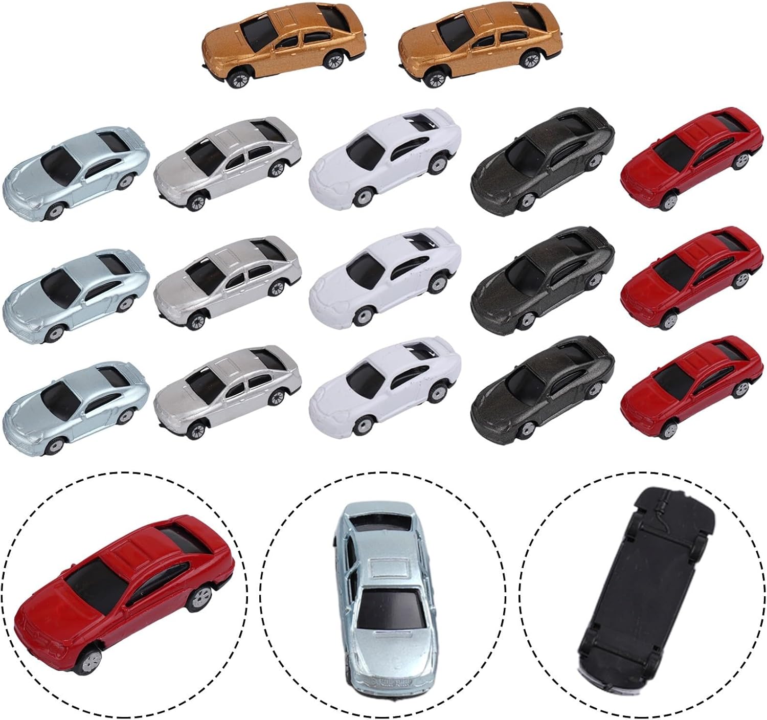 50 modellini di auto a colori: migliora il tuo paesaggio ferroviario con questo set di 50 modellini di auto in scala N 1: perfetti per costruire layout e creare scene realistiche. Realizzati in plastica: questi modelli di auto sono realizzati in plastica, longevità e resistenza all'usura. Dimensioni: 1:160: le auto sono accuratamente ridimensionate in scala N 1:160, rendendole adatte per appassionati di modellini e collezionisti. Uso versatile: ideale per modelli di costruzione, modelli di tavoli da sabbia, paesaggi esterni, materiali didattici psicologici, giardini paesaggistici per studenti e molto altro ancora. Contenuto della confezione: ogni confezione include 50 modelli di auto, che consentono di migliorare il layout della scena con una varietà di veicoli colorati.