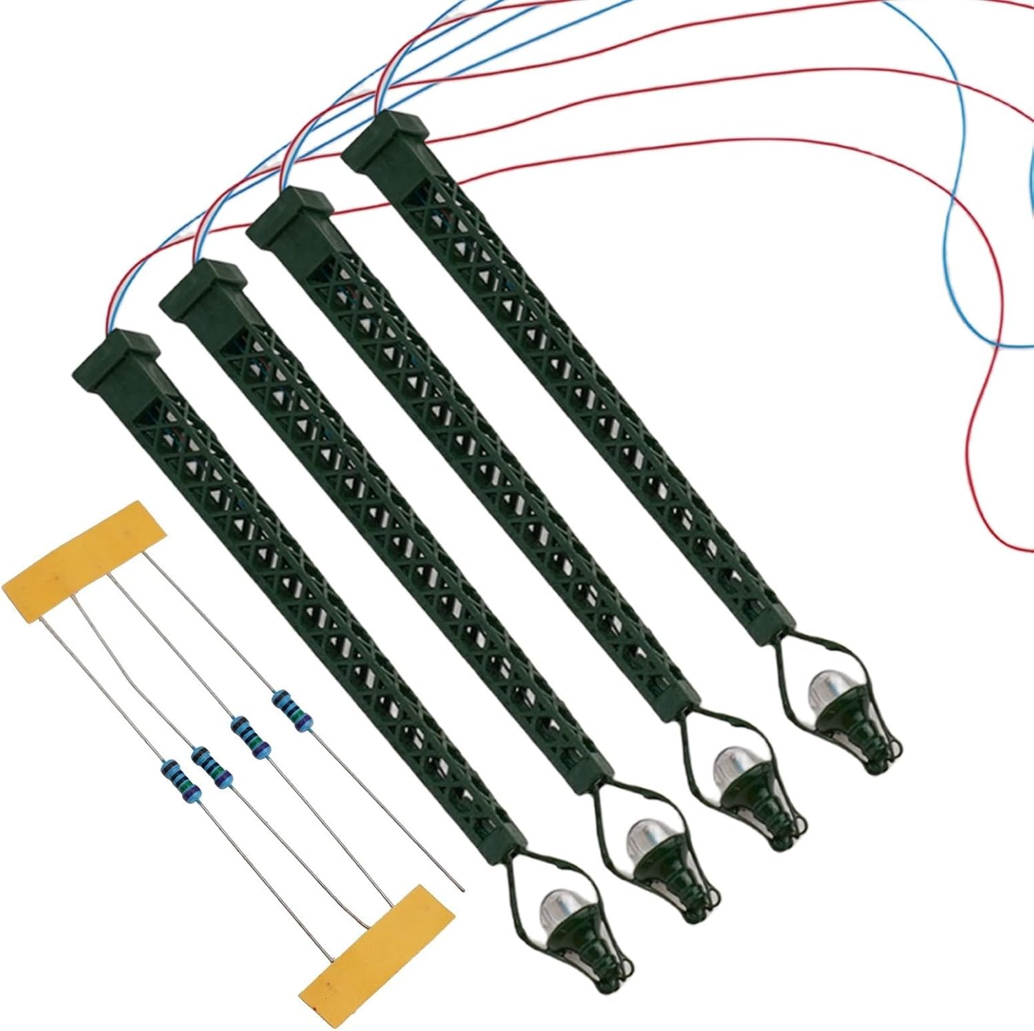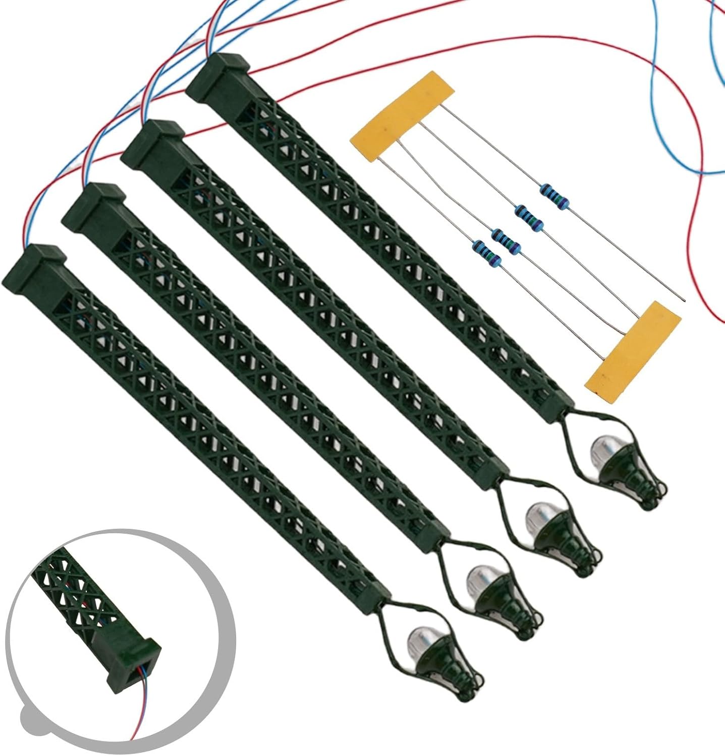Luci ferroviarie per il layout del modello: queste luci a traliccio sono progettate specificamente per modellismo ferroviario e layout di edifici. Realizzati con LED, offrono una soluzione di illuminazione realistica. Adatto per scala 1:160: le luci sono perfettamente scalate per modelli con calibro N, una perfetta integrazione nel tuo layout. Connessione 3 V DC o CA: queste lampade richiedono un'alimentazione CA o CC da 3 V. Si prega di non utilizzarli direttamente con 12 V o 16 V per evitare danni ai LED. Include resistori in serie per collegamento da 12 a 16 V: per coloro che utilizzano un trasformatore da 12-16 V, le lampade sono dotate di resistori in serie che devono essere installati nella linea di alimentazione. Struttura in metallo: costruite in metallo, queste luci sono costruite per durare. Forniscono una soluzione di illuminazione affidabile per il tuo modello ferroviario o il layout dell'edificio.