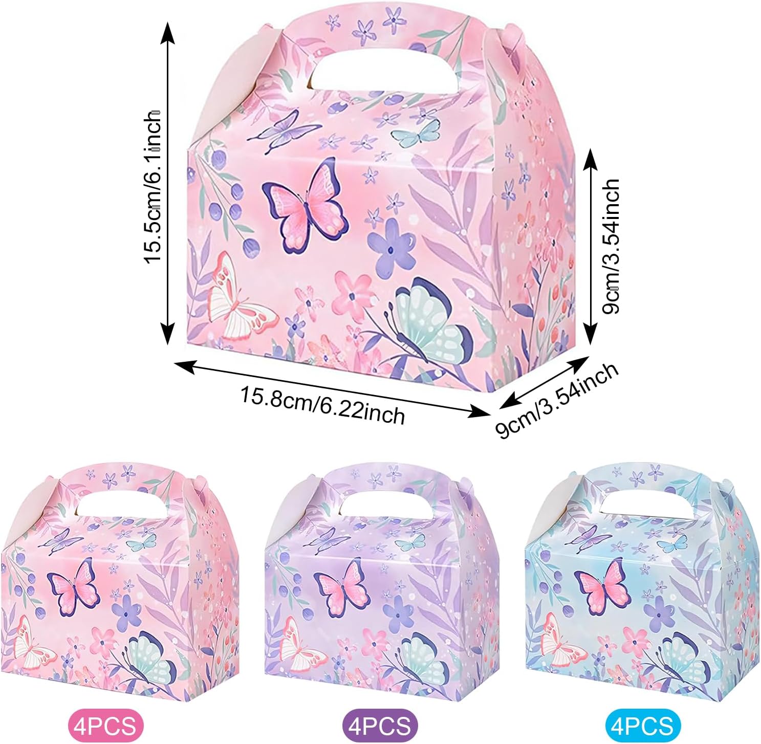🌷【Materiale di cartone all'avanguardia】Realizzate in cartone di alta qualità, queste scatole regalo offrono durata e resistenza eccezionali. La superficie della carta liscia e delicata offre una sensazione eccezionale, mentre la stampa a colori vivaci garantisce un eccellente ripristino del colore e luminosità, facendo risaltare i tuoi regali. 🌷【Bellissimo motivo a farfalla】Ogni confezione regalo presenta un accattivante motivo a farfalla che aggiunge un tocco di eleganza e fascino. Il design dettagliato e i colori vivaci rendono queste scatole perfette per ogni occasione speciale e aggiungono un delizioso fascino visivo ai tuoi regali. 🌷【Contenuto della confezione ricco】Questo set contiene 12 scatole regalo in un adorabile mix di rosa, viola e blu. Che tu stia preparando una festa, una celebrazione festiva o un evento speciale, hai molte scatole dal design accattivante adatte alle tue esigenze. 🌷【Facile da montare】Queste scatole regalo sono pratiche e facili da montare. Non c'è bisogno di nastro adesivo o colla: basta seguire le semplici istruzioni e le tue scatole saranno pronte in pochissimo tempo, risparmiando tempo e fatica. 🌷【Versatile】Queste scatole regalo versatili e funzionali sono perfette per vari usi. Sono ideali come sacchetti regalo, sacchetti per snack, sacchetti per biscotti, sacchetti per caramelle o sacchetti per giocattoli, fornendo una soluzione elegante e pratica per confezionare i tuoi articoli. Perfetto per compleanni, matrimoni, baby shower e altro ancora!