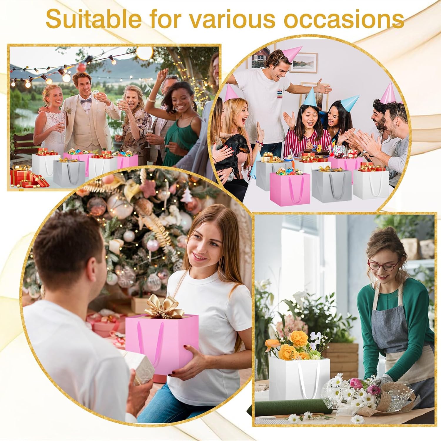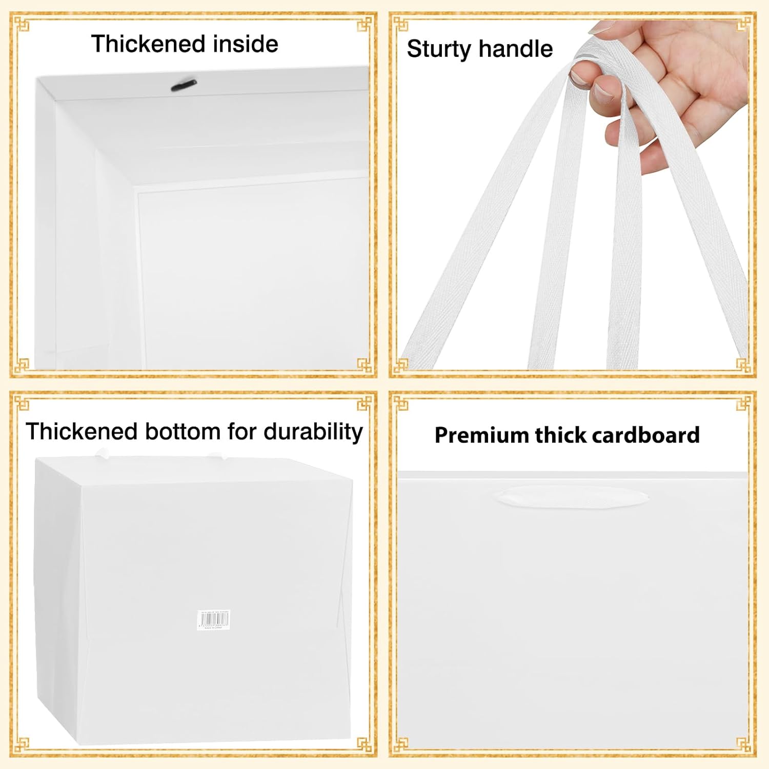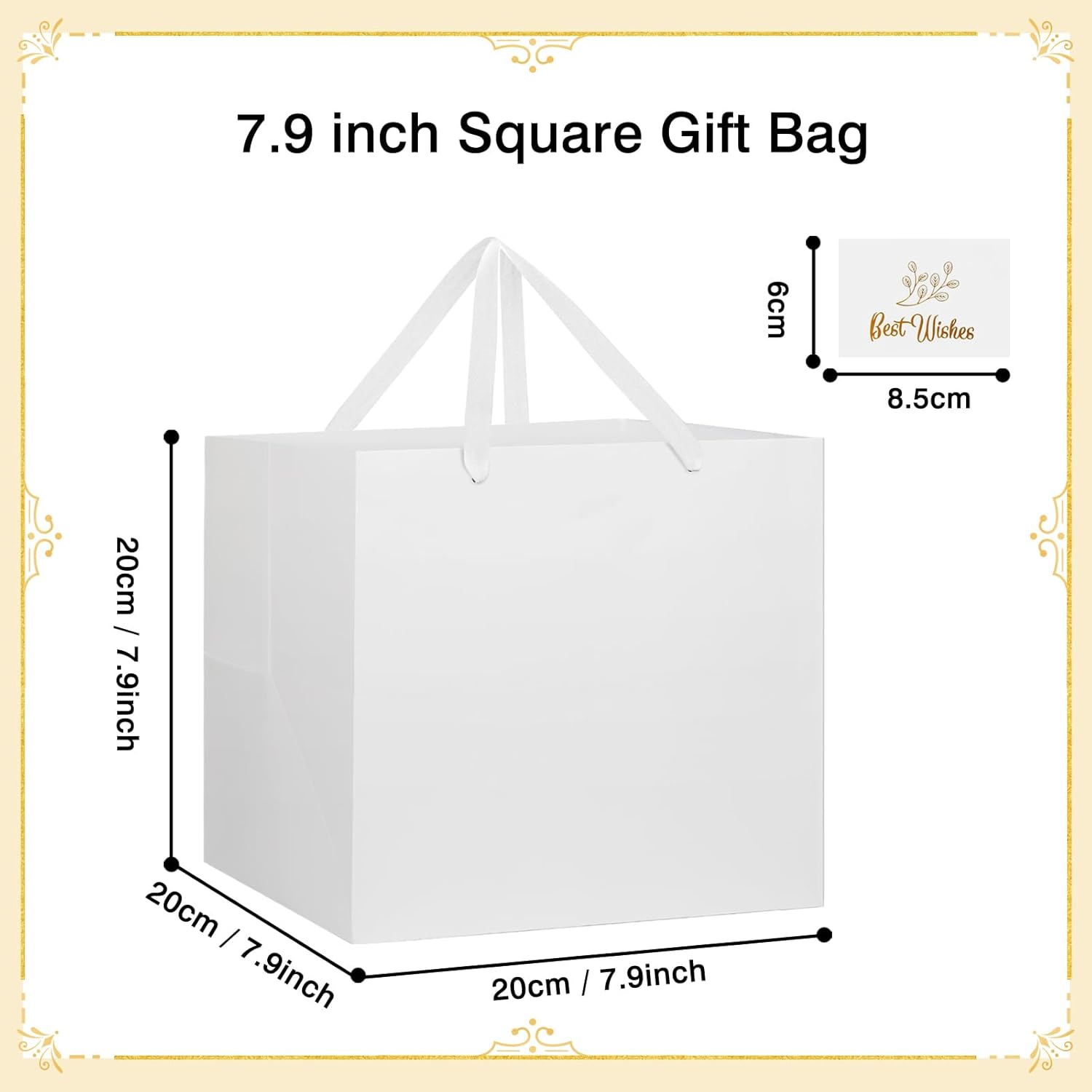 Sacchetto regalo quadrato da 7,9 pollici: riceverai 2 sacchetti regalo di medie dimensioni e 2 buoni regalo. I sacchetti regalo di medie dimensioni da 20 x 20 x 20 cm sono compatti ma eleganti, ideali per piccoli oggetti di lusso (ad esempio profumi, gioielli) in occasioni intime come compleanni o ringraziamenti informali. Durevole e di alta qualità: realizzato con carta spessa di alta qualità. I sacchetti di carta sono riutilizzabili. La superficie del robusto sacchetto regalo è ricoperta da una pellicola idrorepellente e antipolvere. Le maniglie rinforzate e la base a doppio strato garantiscono durata. Estetica classica: minimalista in bianco senza tempo, adatto sia per occasioni casual che formali. Senza motivi o lettere sul sacchetto regalo, i nostri sacchetti di carta bianchi consentono vari disegni o lettere creativi. Molteplici usi: è perfetto per confezionare regali di compleanno, regali per damigelle d'onore, regali di nozze, regali aziendali, regali di San Valentino, regali per la festa della mamma, regali di laurea e regali per feste. Molteplici occasioni: i sacchetti regalo fantasia medi sono ideali per occasioni più formali, come matrimoni, Natale, serate di lavoro o eventi aziendali. Può essere utilizzato anche nella vita quotidiana e si adatta a occasioni informali come i tea party, dove si preferisce un packaging semplice ed elegante