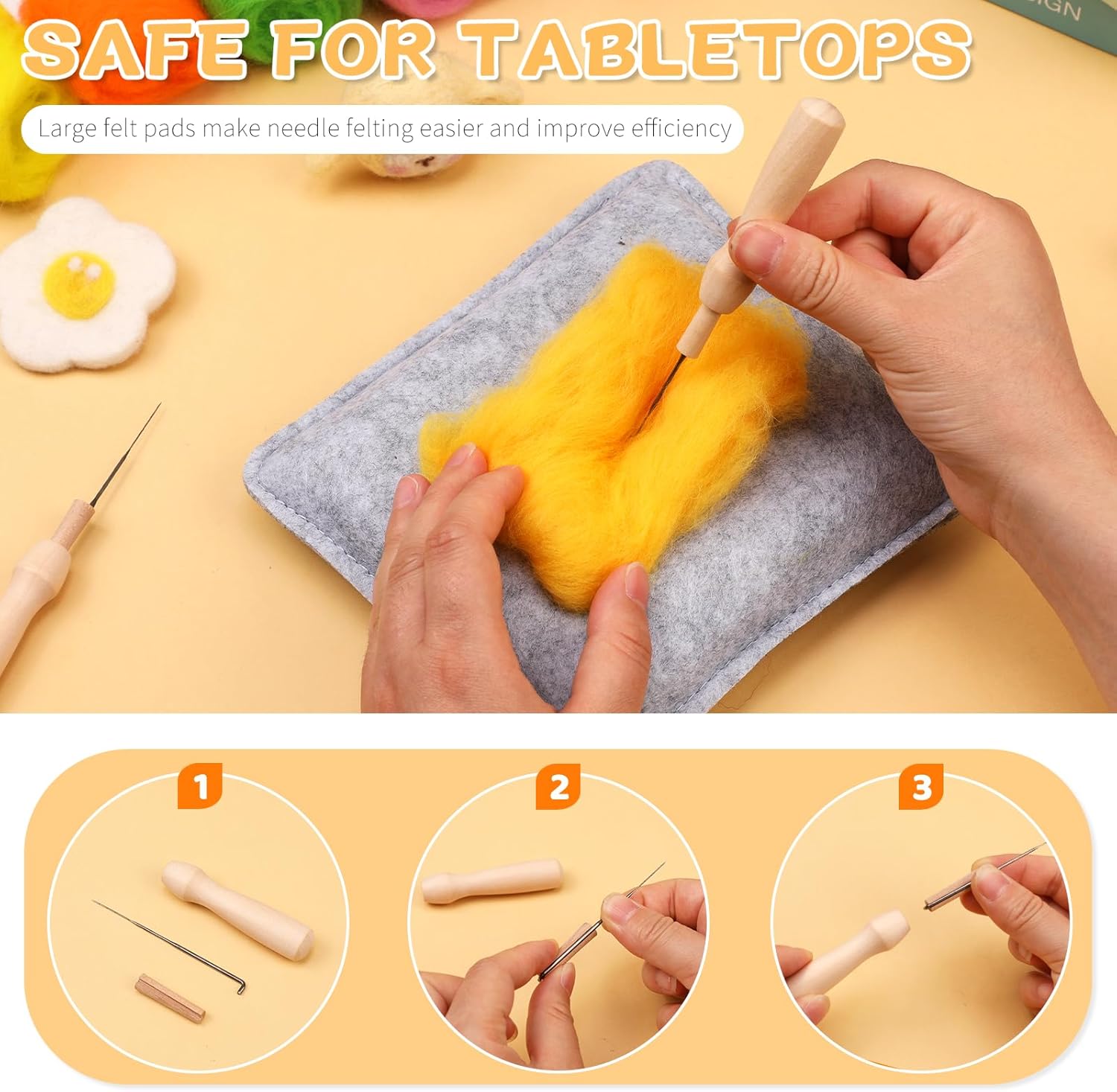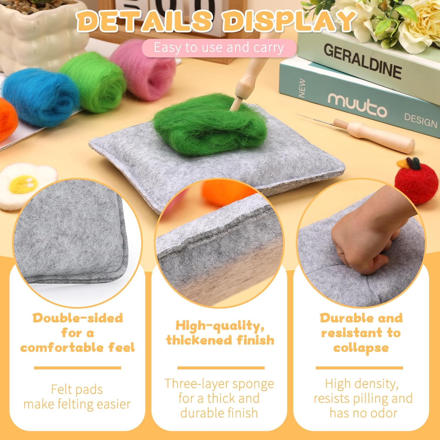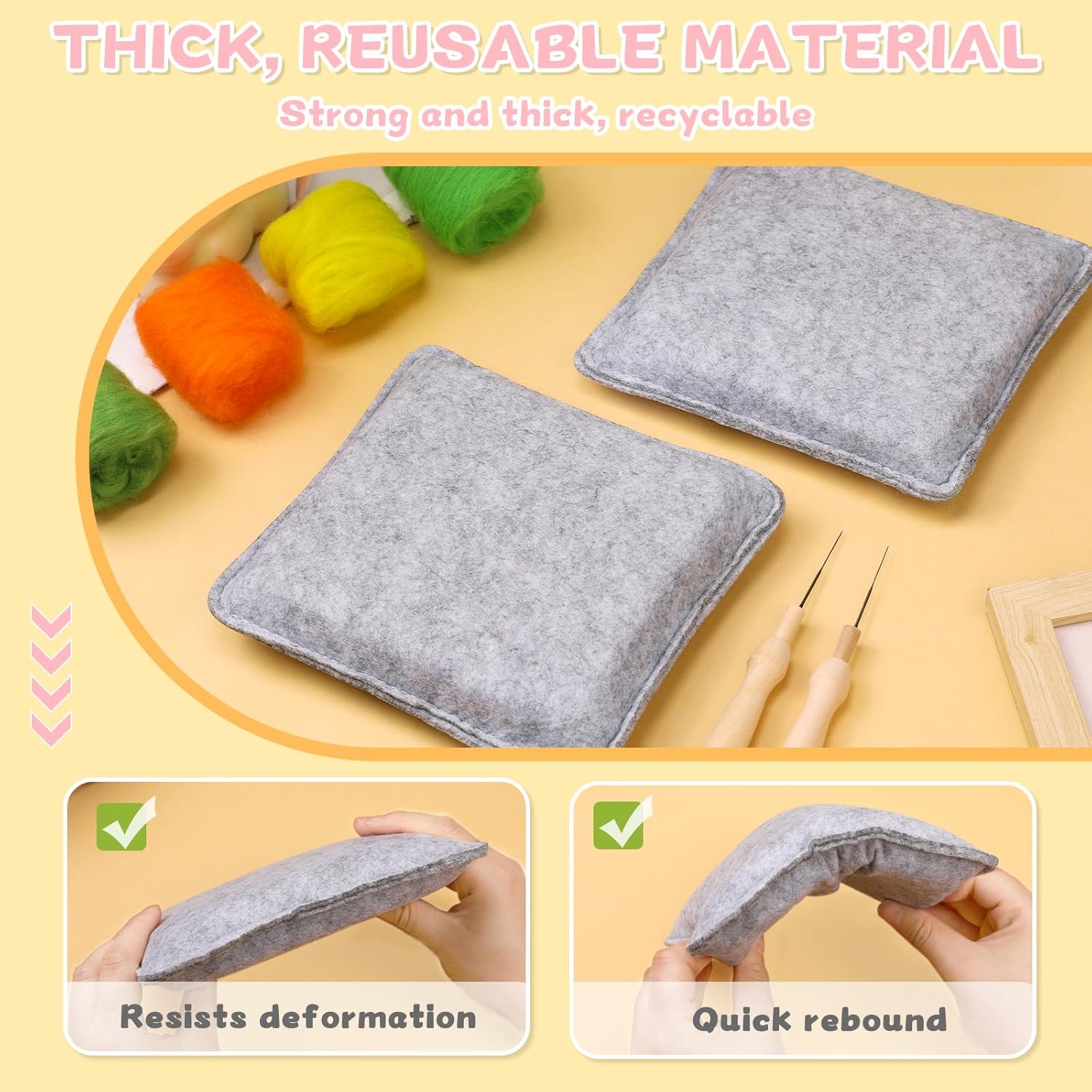 2 tappetini in feltro da 17,8 x 15 cm: i tappetini in schiuma densa proteggono la superficie del tavolo dai graffi e forniscono una superficie di lavoro ideale e sicura per infeltrimento ad ago e infeltrimento a secco con feltro di lana. Il tappetino cattura anche fibre sciolte 2 robusti supporti per aghi da infeltrimento in legno: pratici strumenti per modellare e compattare in modo efficiente il feltro di lana durante l'infeltrimento a secco. Forma ergonomica e realizzata in legno liscio per una comoda maneggevolezza Set perfetto per principianti di infeltrimento: contiene tutto ciò di cui hai bisogno per iniziare con l'infeltrimento creativo a secco, il tappetino per infeltrimento e gli aghi per infeltrInizia subito e crea le tue prime figure o decorazioni in feltro di lana Materiali di alta qualità: i tappetini in feltro in schiuma densa e fibre sono resistenti e offrono supporti in legno stabili. I supporti sono robusti, levigati senza intoppi Versatile per i tuoi progetti di infeltrimento: che si tratti di animali, fiori, gioielli o decorazioni, questo set fornisce la base perfetta per tutte le tue idee di infeltrimento ad ago con feltro di lana. I cuscinetti sono della dimensione perfetta per progetti pratici