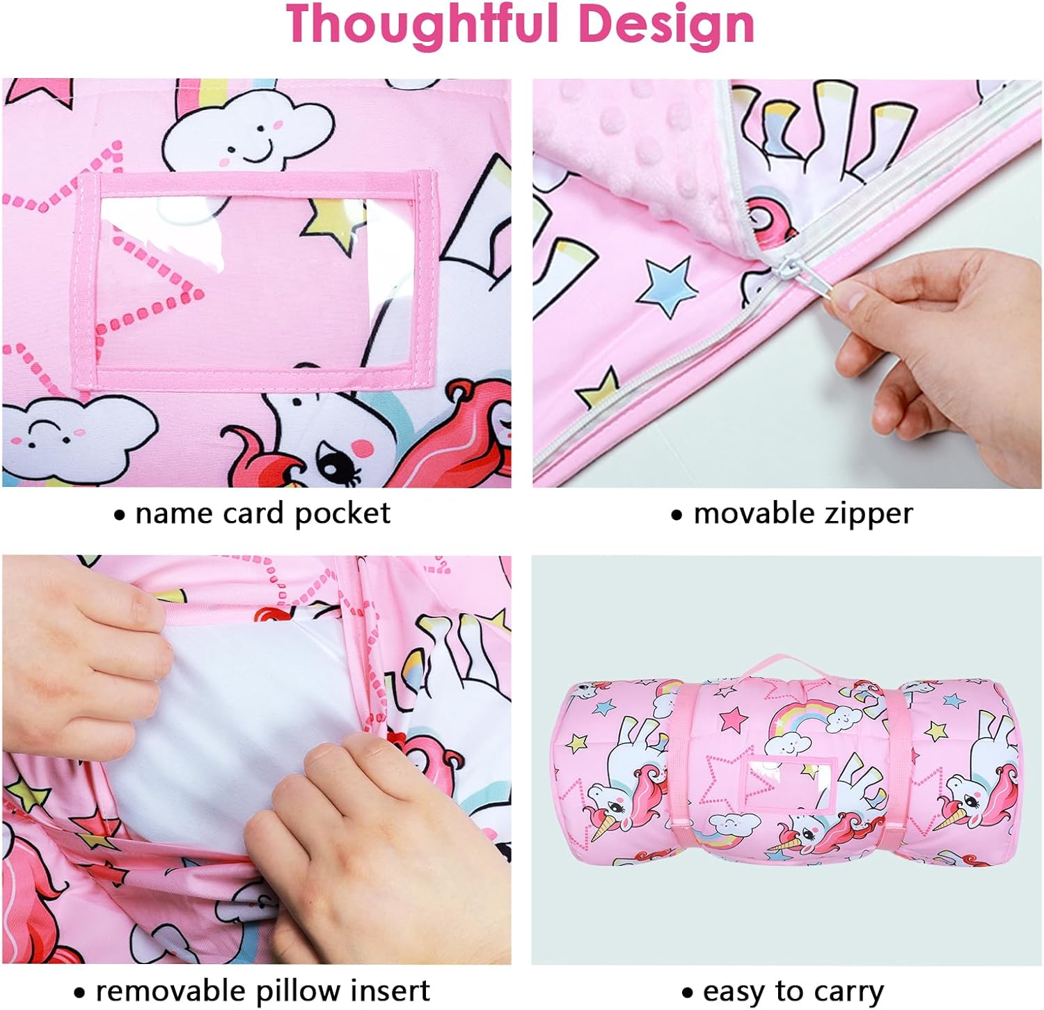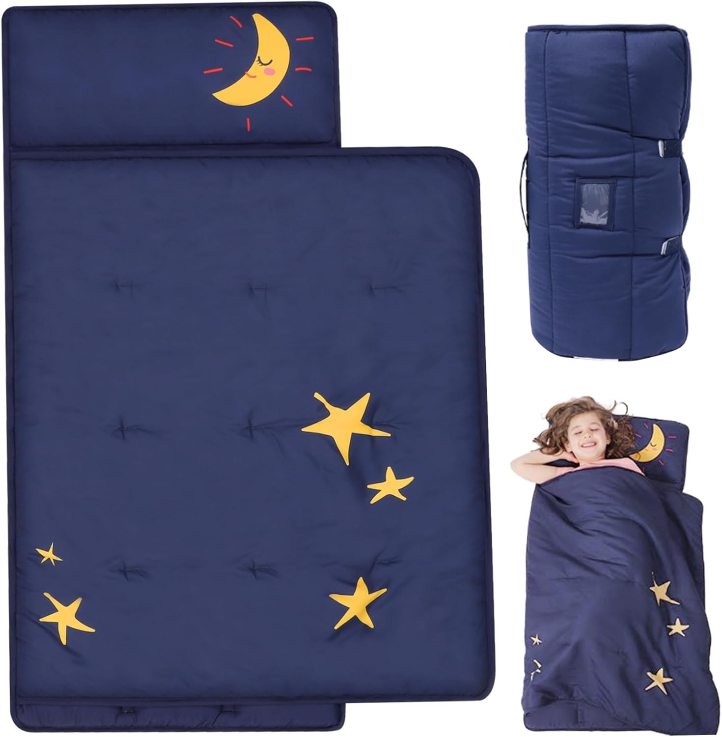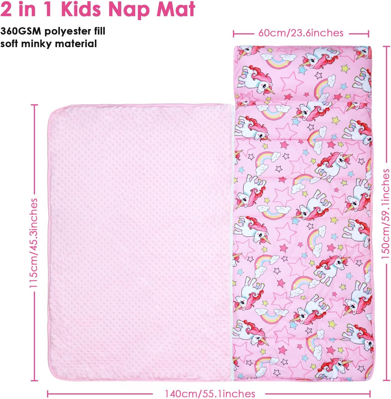 1. Extra-Large e Spesso: Il nostro toddler nap mat extra-large offre un'esperienza spessa e confortevole. Misurando 150 x 60 cm, questo materassino è perfetto per i bambini di tutte le età e altezze, offrendo maggiore comfort e calore. 2. Materiali Premium e Morbidi: Il nostro tappetino per pelo è realizzato in microfibra di alta qualità e foderato con tessuto minky dot, che sono incredibilmente morbidi e delicati sulla pelle del vostro bambino. 3. Design Staccabile 2 in 1: Dotata di una comoda cerniera, la coperta non è solo una copertura calda e affidabile quando viene utilizzata come tappetino per bambini, ma anche la coperta staccabile può essere utilizzata da sola ovunque. 4. Design Facile da Usare: Il nostro sacco nanna adotta è una scelta portatile perfetta per genitori e bambini. Il tappetino è dotato di un'etichetta trasparente con il nome e di fasce portatili per una facile conservazione. È pratico non solo per la casa, ma anche per l'asilo nido, la scuola materna e le attività all'aperto. 5. Facile da Curare: Mantenere la borsa del sonno con cuscino e coperta pulita è un gioco da ragazzi! Si consiglia di rimuovere il cuscino incluso e di gettare il materassino in lavatrice con acqua fredda.