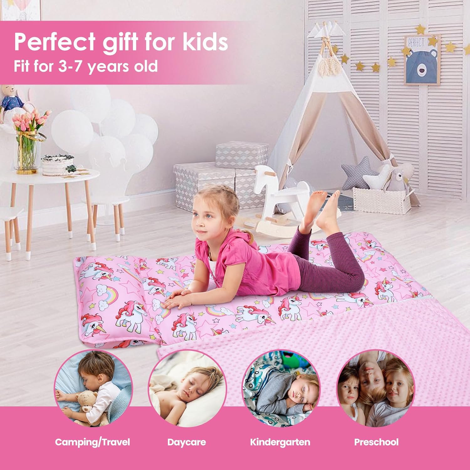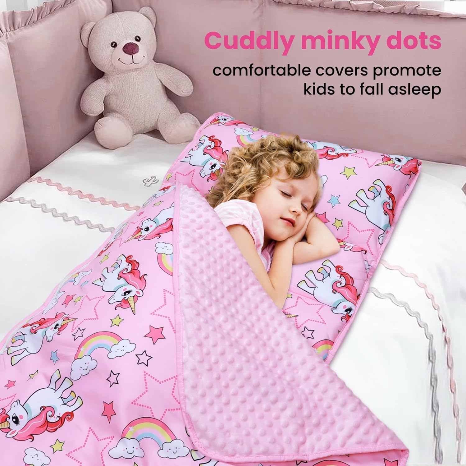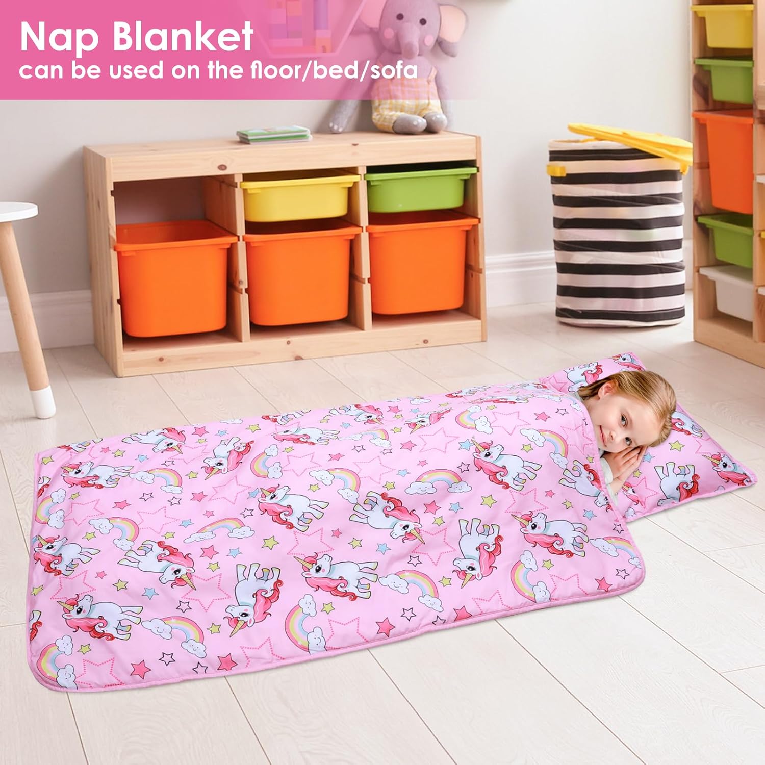 1. Extra-Large e Spesso: Il nostro toddler nap mat extra-large offre un'esperienza spessa e confortevole. Misurando 150 x 60 cm, questo materassino è perfetto per i bambini di tutte le età e altezze, offrendo maggiore comfort e calore. 2. Materiali Premium e Morbidi: Il nostro tappetino per pelo è realizzato in microfibra di alta qualità e foderato con tessuto minky dot, che sono incredibilmente morbidi e delicati sulla pelle del vostro bambino. 3. Design Staccabile 2 in 1: Dotata di una comoda cerniera, la coperta non è solo una copertura calda e affidabile quando viene utilizzata come tappetino per bambini, ma anche la coperta staccabile può essere utilizzata da sola ovunque. 4. Design Facile da Usare: Il nostro sacco nanna adotta è una scelta portatile perfetta per genitori e bambini. Il tappetino è dotato di un'etichetta trasparente con il nome e di fasce portatili per una facile conservazione. È pratico non solo per la casa, ma anche per l'asilo nido, la scuola materna e le attività all'aperto. 5. Facile da Curare: Mantenere la borsa del sonno con cuscino e coperta pulita è un gioco da ragazzi! Si consiglia di rimuovere il cuscino incluso e di gettare il materassino in lavatrice con acqua fredda.