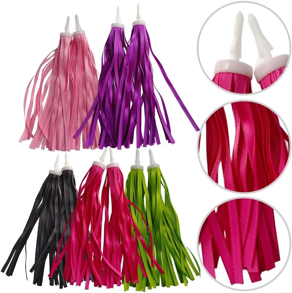 Design colorato con nappe: le vivaci nappe nel vento, portando gioia ed eccitazione alle biciclette e agli scooter per bambini, rendendo ogni giro un'avventura divertente. Morbide e materiali: realizzate in filo di plastica elastica, queste nappe sono lisce al tatto e resistenti alla rottura, godimento di lunga durata per i bambini. Facile installazione: basta inserire le nappe nei fori riservati del manubrio per una rapida configurazione; i bambini possono gestirle facilmente da soli, promuovendo l'indipendenza. Compatibile con varie biciclette: queste stelle filanti sono adatte per biciclette per bambini, scooter e bici senza pedali, rendendole una scelta per migliorare qualsiasi corsa. [Leggero per la sicurezza] Pesa solo 23 g, non aggiungono alcun onere aggiuntivo durante la guida, aderendo agli standard di salute e sicurezza dei bambini per la tranquillità dei genitori.