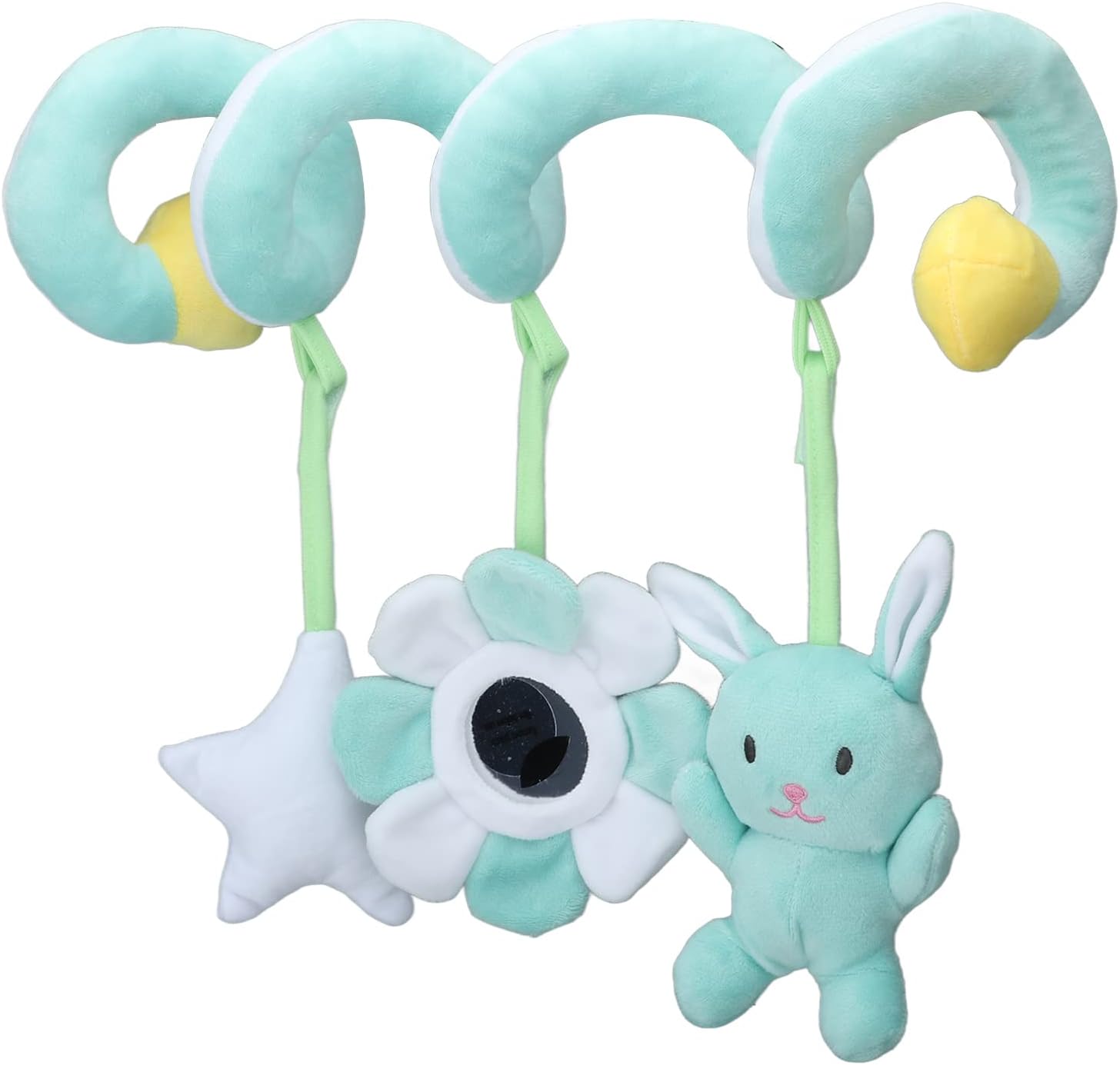 Morbido peluche: il giocattolo sospeso è realizzato in eccellente materiale morbido e morbido, si avvolge facilmente attorno al manubrio di qualsiasi passeggino. Rendi i bambini comodi e sicuri. Migliora lo sviluppo del bambino: l'animale carino incoraggia il bambino a raggiungere, battere, afferrare e spremere, utile per migliorare la forza muscolare della mano e sviluppare la coordinazione della mano e degli occhi. Design a gancio: giocattolo per bambini appeso con un design a gancio, quindi puoi portare questo giocattolo quasi ovunque, che è molto facile da appendere o smontare. Compagno di gioco : un giocattolo morbido e confortevole dotato di simpatici animali dai colori vivaci può facilmente stimolare la curiosità dei bambini e coltivare la loro capacità di percezione del colore, rendendoli il compagno di giochi per i bambini. Ampia applicazione: puoi appendere facilmente i giocattoli per bambini su passeggini, culle e seggiolini auto, tutti oggetti di scena decorativi perfetti.