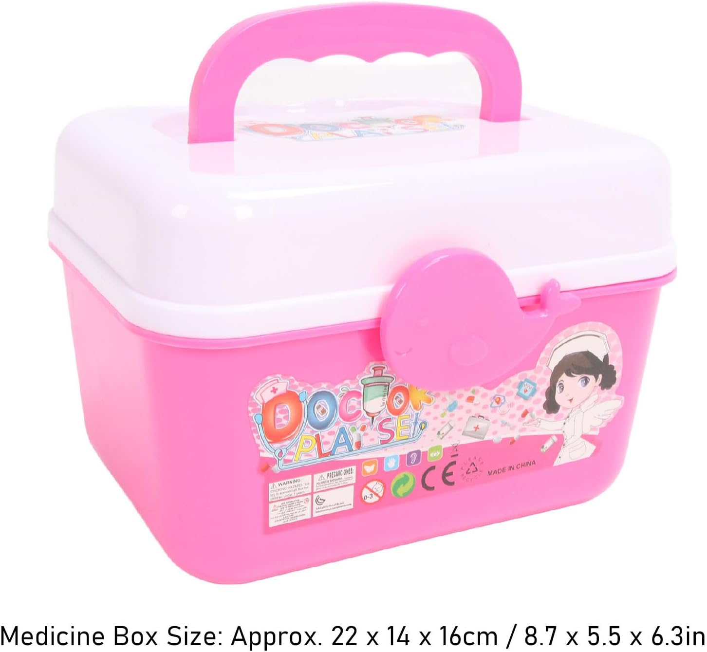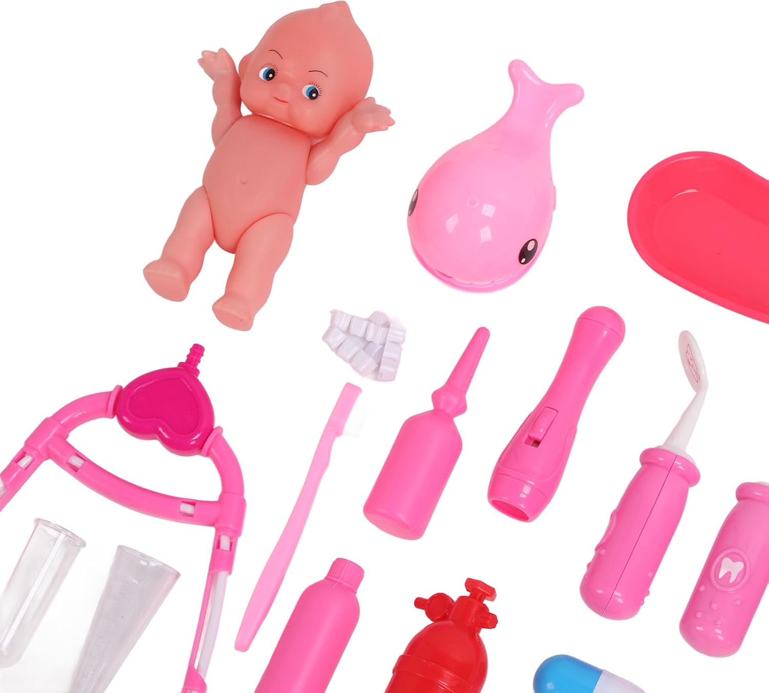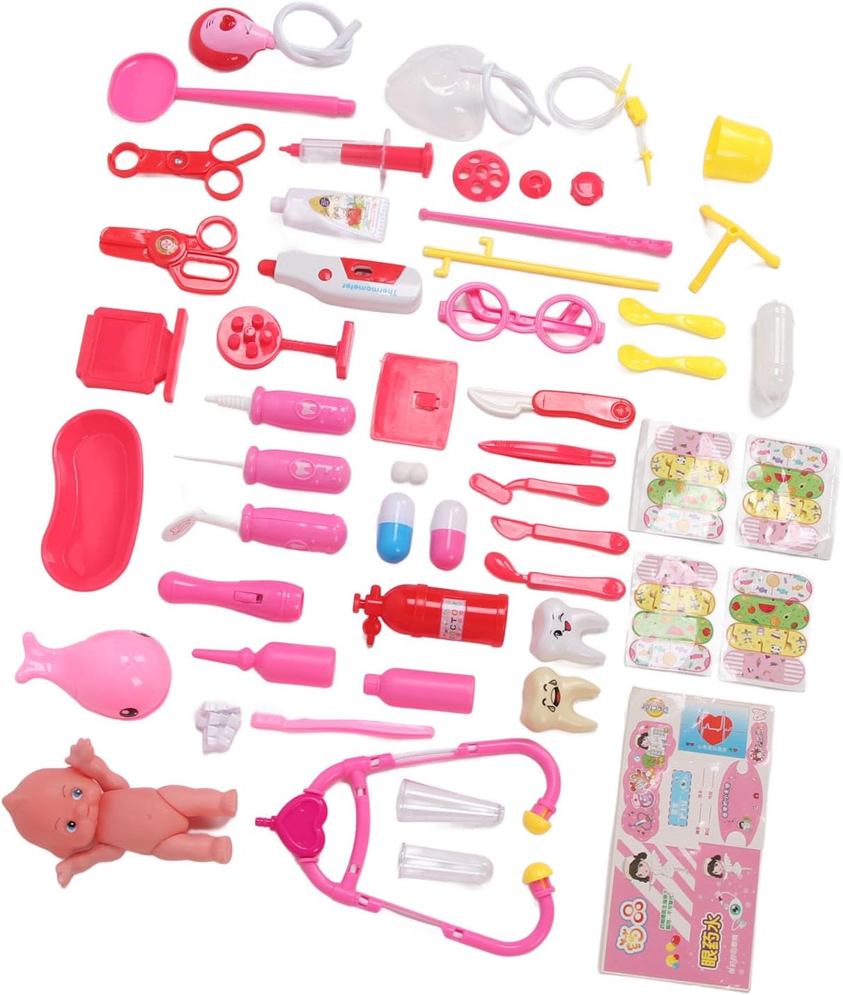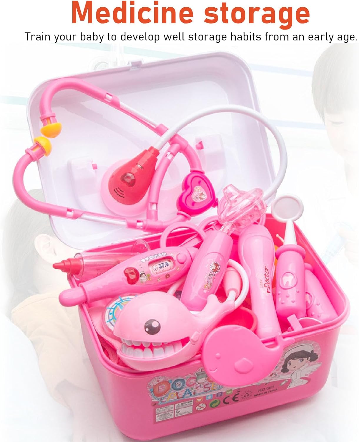 Giochi di ruolo: con bambole in miniatura per giochi di ruolo, il kit medico per bambini consente ai bambini di mettersi nei panni di un medico, coltivando la loro immaginazione e creatività mentre si impegnano in scenari medici fittizi. Giocattoli educativi: il kit medico per bambini funge da strumento educativo che coinvolge i bambini nel gioco trasmettendo conoscenze essenziali sull'assistenza sanitaria e sull'importanza di rimanere in salute. Interazioni genitore-figlio: il kit medico per bambini facilita il legame genitore-figlio attraverso il gioco interattivo e attività coinvolgenti. I genitori possono unirsi ai loro piccoli in giochi di ruolo in scenari medico-paziente, favorendo connessioni significative e condividendo momenti di risate. Comodo contenitore per i medicinali: incoraggiando le abitudini di buona organizzazione fin dalla giovane età, il contenitore incluso nel kit medico per bambini offre spazio designato per riporre accessori e strumenti medici. Esperienza altamente reale: progettato per il massimo realismo, il kit medico per bambini presenta componenti interattivi come stetoscopio che produce suoni del battito cardiaco quando viene premuto, creando un'esperienza coinvolgente per i bambini.