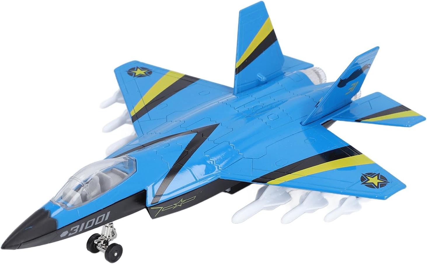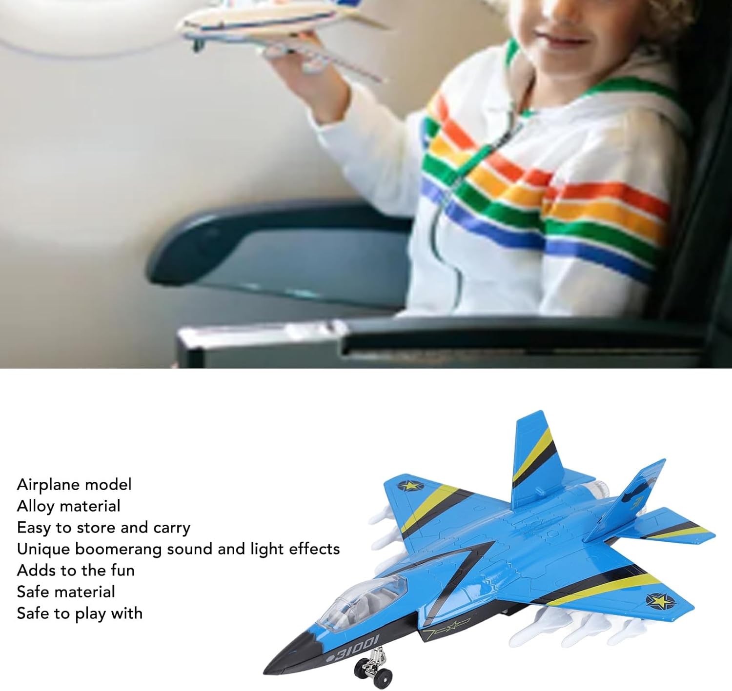 Materiale in lega: il modello di aeroplano è costruito con materiale in lega resistente, il modello offre un'esperienza tattile premium e un'eccellente durata. Design a scatola a misura di bambino: il design a scatola a misura di bambino del modello di aereo consente una facile conservazione e trasportabilità, rendendo comodo portare il modello ovunque. Suono e luce attraenti unici: goditi l'eccitazione degli effetti sonori e luminosi attraenti, aggiungendo una componente extra divertente e interattiva al tempo di gioco. Esclusivo per i bambini piccoli: costruito con materiali sicuri, il modello elettronico è progettato per far giocare i bambini piccoli, garantendo un'esperienza piacevole e senza preoccupazioni. Squisito modello di aereo: realizzato con cura per replicare i dettagli di un vero aereo da caccia, il modello elettrico fornisce una rappresentazione autentica del vero aereo.