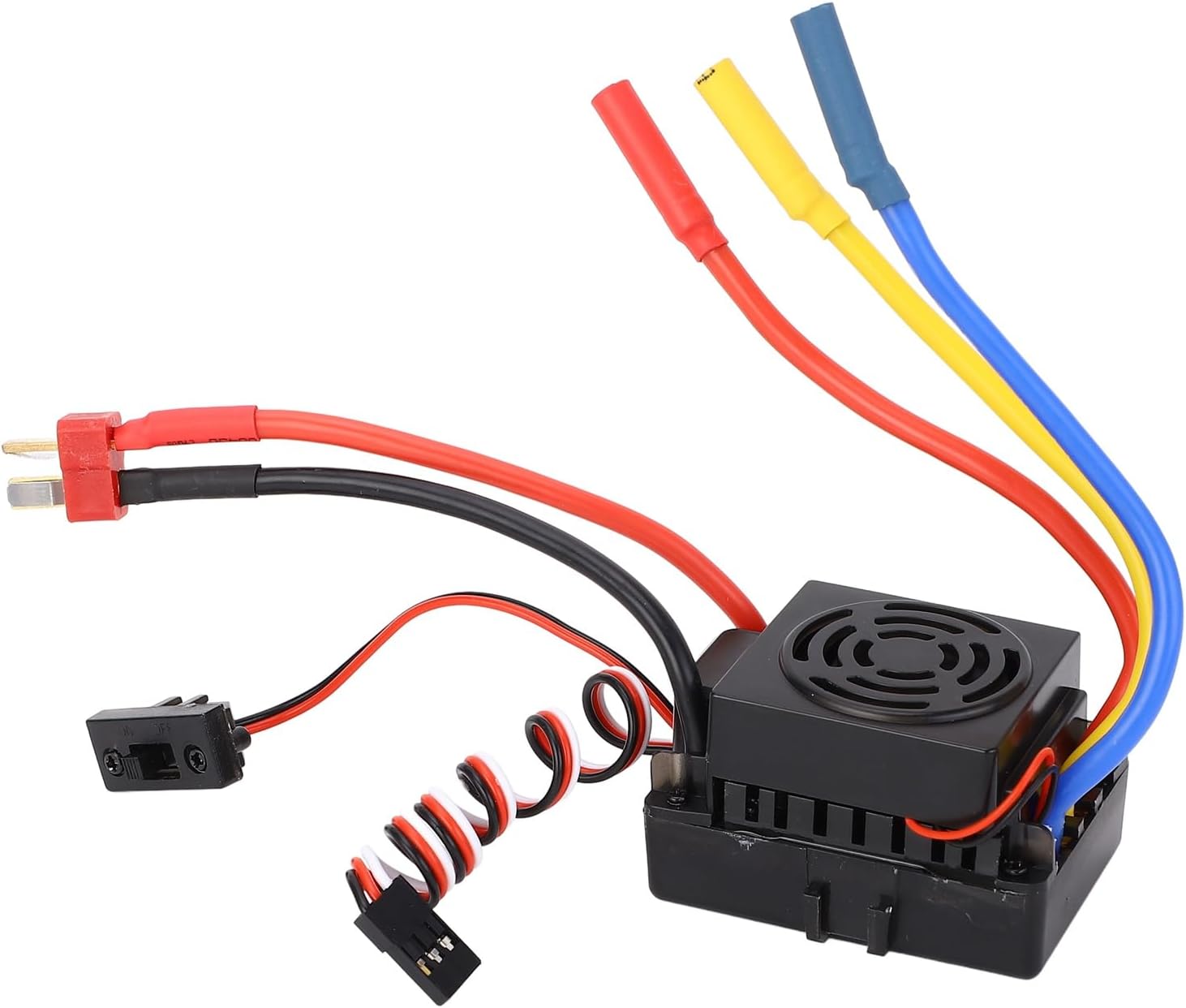 MODELLO APPLICABILE: L'ESC senza spazzole è resistente all'acqua e alla polvere e durevole. Possedere una forte resistenza alla corrente, una buona dissipazione del calore. Adatto per veicoli RC 1/10 MATERIALE DUREVOLE: Realizzato con eccellenti parti in plastica, il regolatore di velocità elettronico garantisce funzionamento efficiente e ha una forte resistenza all'erosione, durevole, impermeabile, leggero PROTEZIONE MULTIPLA: l'ESC senza spazzole è dotato di protezione da interruzione di bassa tensione della batteria, protezione da surriscaldamento, protezione da perdita di segnale 'acceleratore, molto affidabile EFFICIENTE E PRATICO: il BEC da 5,8 V 3 A possiede 'elevata efficienza, l'ESC può essere regolato insieme a una scheda di programma, più comodo da usare PRESTAZIONI ECCELLENTI: l'ESC senza spazzole presenta una risposta 'acceleratore migliorata, 'eccellente accelerazione, una forte frenata e una linearità 'acceleratore, potente e stabile