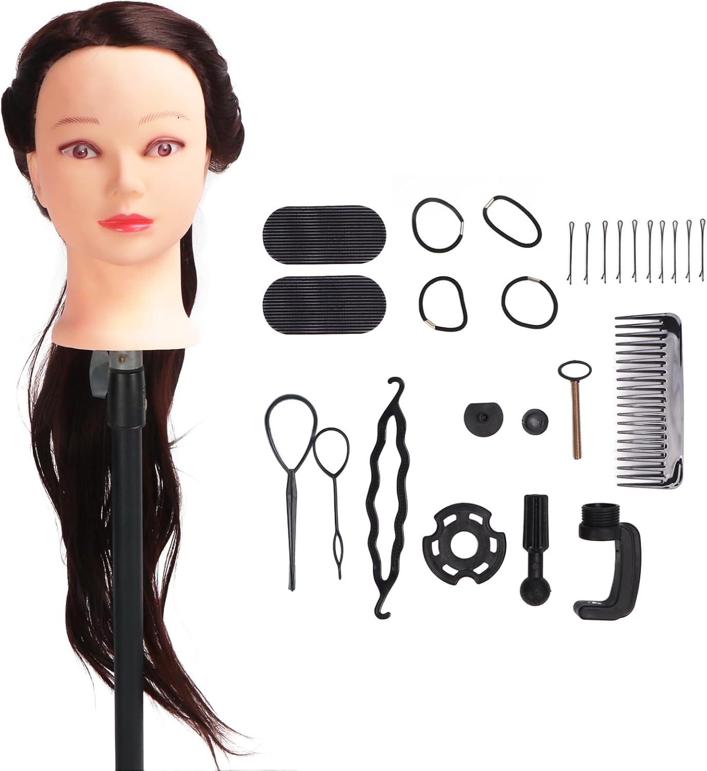 SUPPORTO MORSETTO: viene fornito con un set di accessori per supporto, facile installare, il supporto viene utilizzato per il supporto e il fissaggio della testa di allenamento, il design del morsetto, può essere fissato sul lato del tavolo. LUOGO APPLICABILE MULTIPLO: importante strumento per la pratica del parrucchiere per principianti, la testa per l'allenamento dell'acconciatura è adatta per parrucchiere, accademia per parrucchieri, negozio di cosmetici, ecc. STRUMENTO PER LO STYLING: dotato di una serie di accessori, che include pettine, forcina per capelli, elastici per capelli, frangia per capelli, ecc., Soddisfa le tue diverse esigenze faite, semplice e pratico. CAPELLI SINTETICI AD ALTA TEMPERATURA: la parrucca della testa del manichino è realizzata con capelli sintetici ad alta temperatura, che hanno una grande plasticità, morbidi e lisci, lucidi, non possono essere permanentati e tinti. AMPIA GAMMA DI APPLICAZIONI: la testa del manichino per capelli è adatta per la pratica dell'intrecciatura e dell'acconciatura, l'acconciatura, l'esposizione di accessori per capelli, la pratica del trucco, ecc.