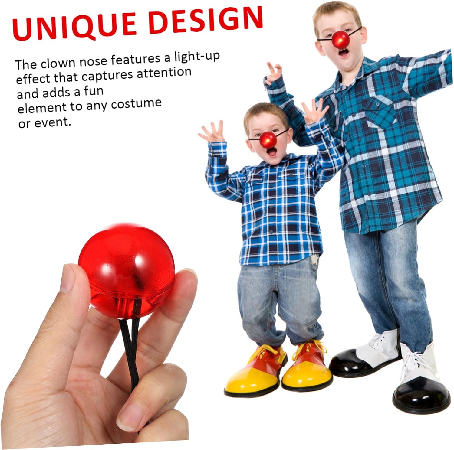 DESIGN UNICO: il naso da clown presenta un effetto luminoso che attira l'attenzione e aggiunge un elemento divertente a qualsiasi costume o evento. naso da clown per, suoni luminosi da clown Misura regolabile: dotato di un elastico, il naso luminoso da clown può essere adattato a diverse teste, fornendo una vestibilità sicura per tutti, naso piccolo da clown, naso da circo Design accattivante: l'aspetto vivace e giocoso del naso da clown cosplay lo rende un accessorio eccezionale, attira immediatamente l'attenzione, regali per feste circensi, naso finto Versatile: adatto a feste, Halloween, spettacoli teatrali e altre occasioni. Questo naso da clown è un accessorio essenziale per vari eventi, naso da clown per bambini, costume da festa Design luminoso: il nostro naso da clown è dotato di una luce incorporata, crea un bagliore accattivante e può essere facilmente acceso e spento, naso da cosplay da clown, costume da clown