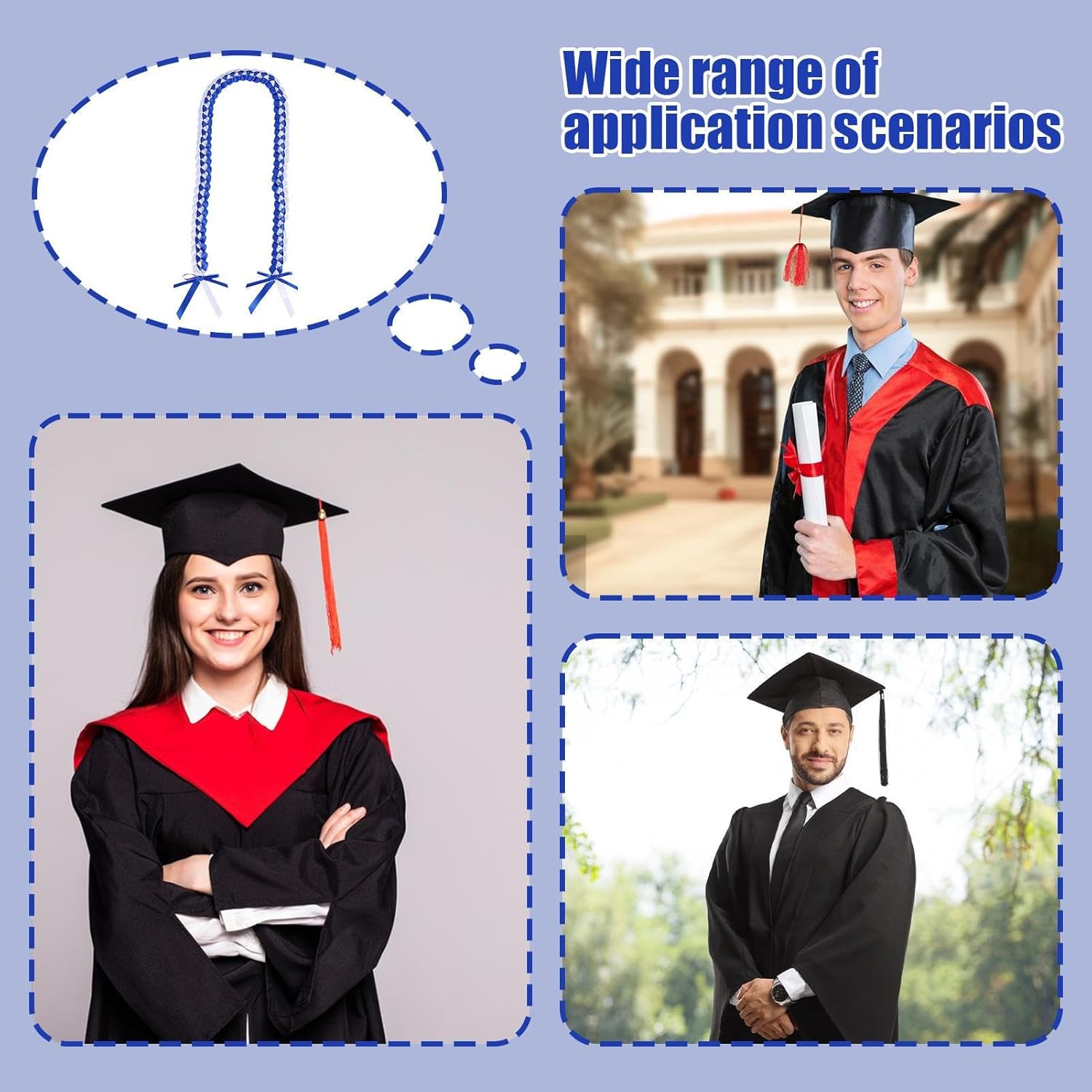 Ricordo indimenticabile: i cordini di laurea aggiungono fascino alle celebrazioni e fungono da ricordo festivo per eventi di laurea. Segnano il momento significativo dei risultati accademici con fascino senza tempo e rimangono come ricordo duraturo del grande giorno Confortevole e regolabile: il cinturino lungo 100 cm e largo 3,3 cm in materiale elastico offre una vestibilità regolabile, che garantisce comfort e praticità. Si adatta perfettamente a diverse circonferenze della testa, senza compromettere lo stile o la facilità d'uso. L'accessorio è perfetto per feste di laurea e altre occasioni formali. Tessitura artigianale: rifiniti con nastro in poliestere intrecciato a mano, questi cordini sono caratterizzati da colori vivaci che rimangono inalterati anche dopo un uso prolungato. Offrono una consistenza liscia e lussuosa e un'elevata resistenza. Perfettamente adatto per cerimonie e celebrazioni in cui un design elegante e una lavorazione precisa sono in primo piano. I cordoncini sono un compagno affidabile per i momenti importanti Miglioramento dell'abbigliamento: progettate per migliorare gli abiti da laurea, queste coppette sono ideali per cerimonie o occasioni fotografiche. Offrono un accessorio elegante che aggiunge un tocco raffinato e orgoglioso e aiuta a rendere il giorno speciale ancora più luminoso Cerimonia elegante: arricchisci la tua festa di laurea con ciocche versatili che si abbinano perfettamente al tuo guardaroba. Celebrate con stile le pietre miliari nell'istruzione e lasciate un"impressione duratura dei tuoi risultati di vita. Le ciocche sono la scelta ideale per chiunque voglia apprezzare adeguatamente i loro successi accademici.