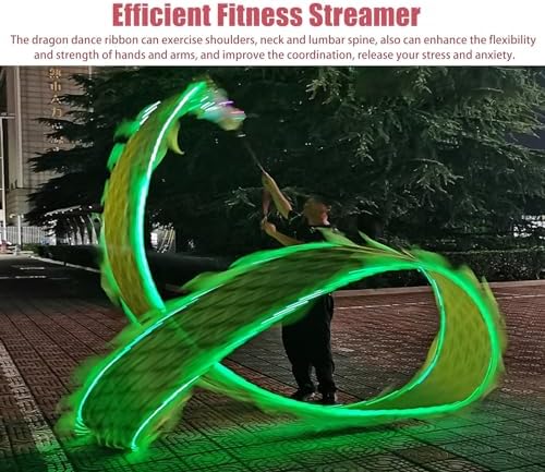 Nastro resistente Dragon Poi: realizzato in tessuto stampato a caldo su un lato di alta qualità e dotato di una testa di drago in plastica, questo streamer leggero e portatile offre morbidezza e flessibilità per movimenti vorticosi fluidi, rendendolo facile da usare. Streamer per migliorare il fitness: perfetto per allenare spalle, collo e colonna lombare, questo nastro per danza del drago aumenta la flessibilità della mano e del braccio, migliora la coordinazione e fornisce un ottimo modo per alleviare lo stress. Facile da montare e usare: basta attaccare la corda alla testa del drago e collegarla con il nastro per una rapida installazione. I principianti possono iniziare con lo schema di rotazione "8" prima di passare a trucchi più avanzati. Ampia gamma di applicazioni: adatto a tutte le età, dai bambini agli anziani. Ideale per allenamenti di fitness, spettacoli di danza, giocoleria, talent show e serve come divertente gioco all'aperto per parchi, spiagge e feste. Design tradizionale ma accattivante: i suoi movimenti accattivanti attirano l'attenzione, rendendolo un punto culminante per eventi e riunioni all'aperto. Un favorito tra gli appassionati di draghi e coloro che cercano di portare un tocco unico alle loro attività.