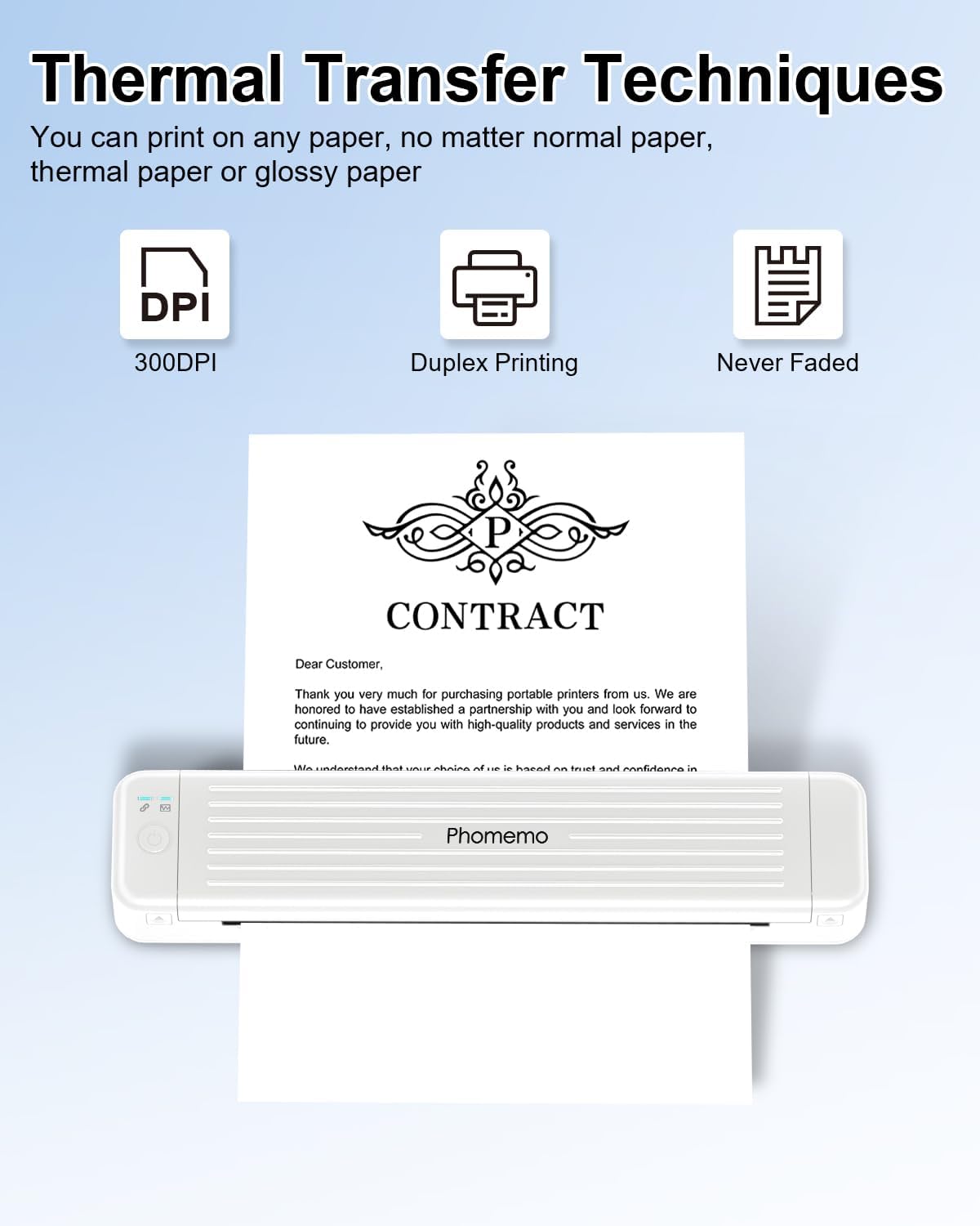 Nastro Dedicato: Nastro termico per stampante termica portatile a4 Phomemo P831. La stampante inkless Bluetooth Phomemo P831 supporta carta comune A4/B5/A5 (210×297 mm/176×250 mm/148×210 mm), carta termica e carta termica lucida. (Nota: non è compatibile con HPRT, POLONO MT800 e altre marche di stampanti) Vita Utile: 1 rotolo di nastro stampa 45 fogli di normale carta A4, leggero e di piccole dimensioni, facile da trasportare. (1 scatola contenente 2 nastro a trasferimento termico, stampa 90 fogli di carta a4) Facile da Sostituire: È sufficiente seguire le frecce per caricare il nastro in modo corretto e senza problemi nella stampante inkless Phomemo P831 e il gioco è fatto. Potete vedere le istruzioni per la sostituzione dal video sulla pagina, perfetto per chi viaggia molto, risparmia tempo e continua a stampare Metodo di Stoccaggio: I nastri termici Phomemo devono essere conservati a una temperatura compresa tra -5°C e 45°C e a un'umidità relativa compresa tra il 20% e l'85%. Evitare le alte temperature e la luce diretta del sole. La data di scadenza è di circa 18 mesi Qualità di Stampa a 300 DPI: La stampante termica Phomemo P831 a4 supporta la stampa di documenti PDF, contratti, fatture, pagine web e documenti di prova, rendendola adatta alla stampa di contratti permanenti e documenti importanti. (Si prega di notare che non è consigliabile stampare immagini di volti umani, animali o altri ritratti personali)